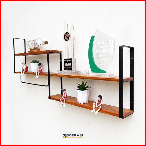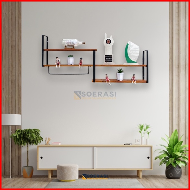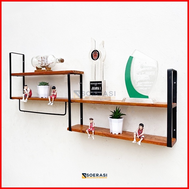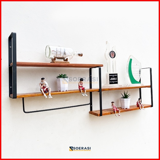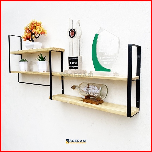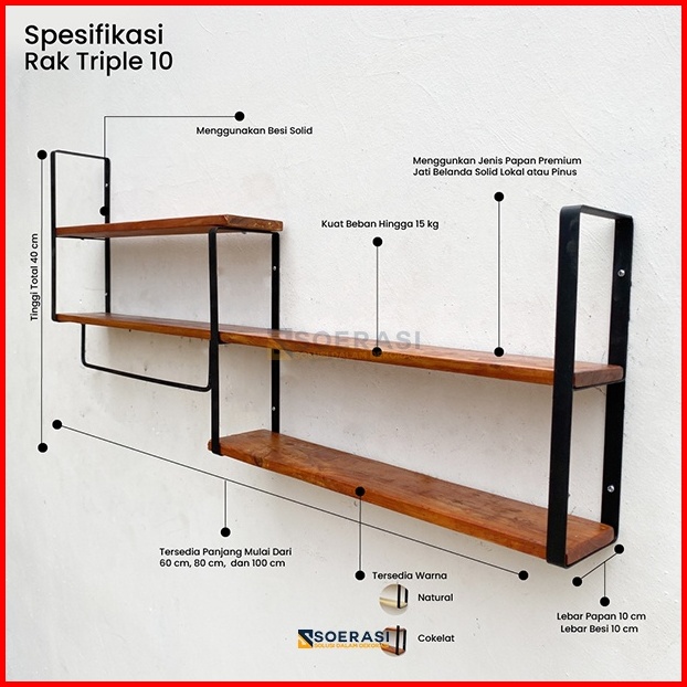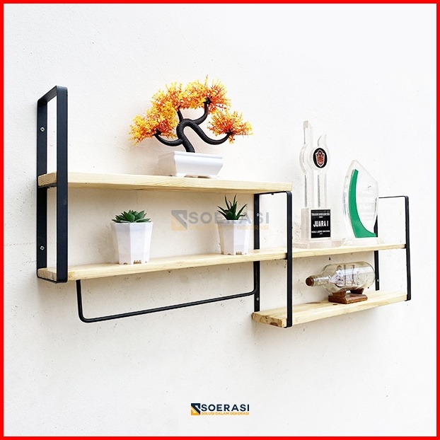 Triple 10cm Rak Dinding Tora Tempel Gantung Ambalan Susun Tingkat 3 Ruang Tamu Keluarga Besi Dan Kayu Penyimpanan Sepatu