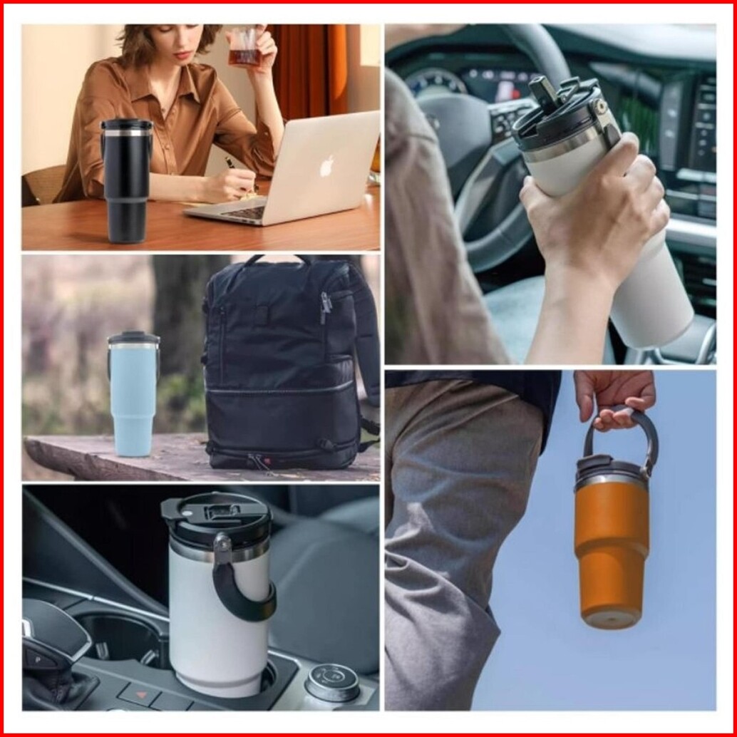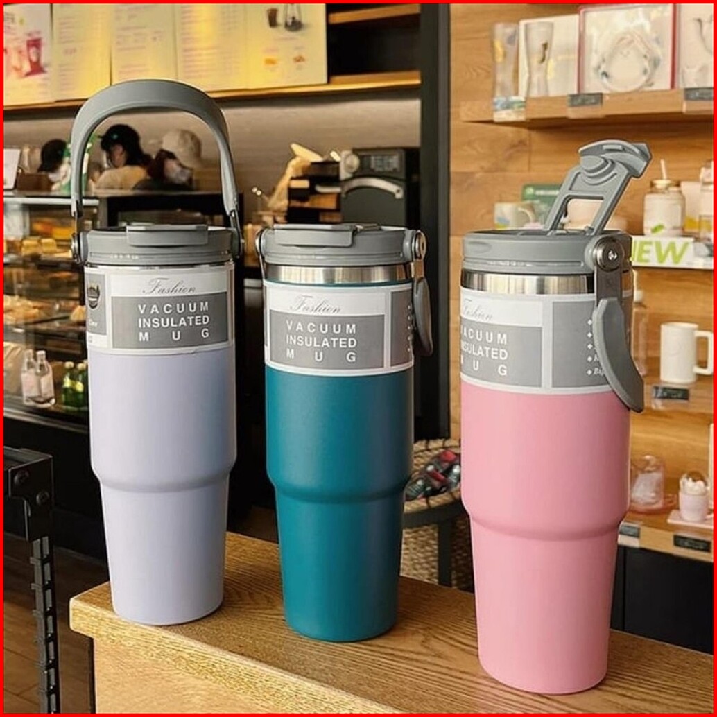 Handle Tumbler Tumblr Botol Minum Thermos Termos Vacuum Vacum Insulated Bottle Stainless Stell Portable Tahan Panas Ding