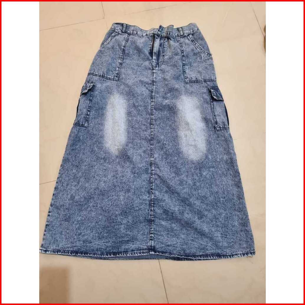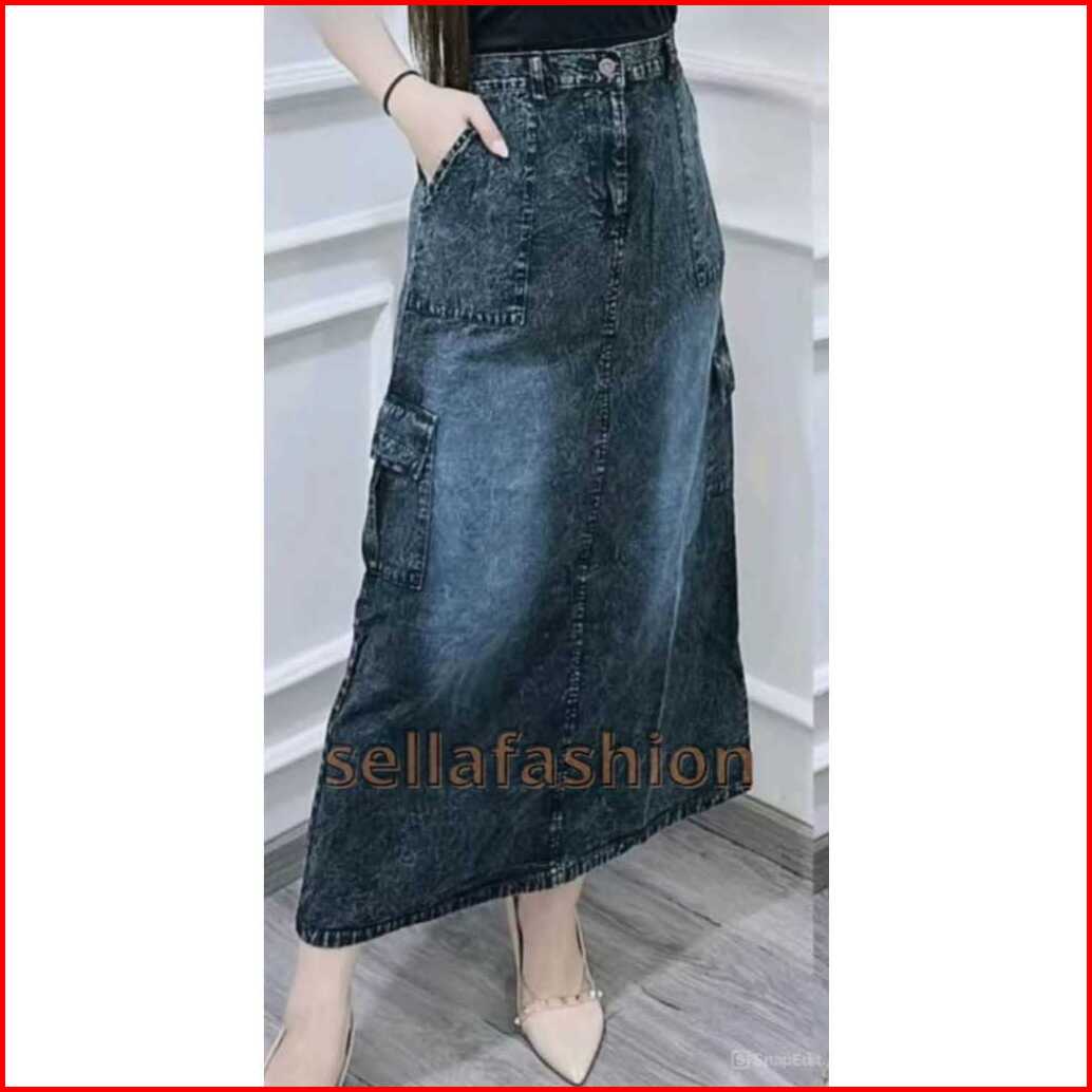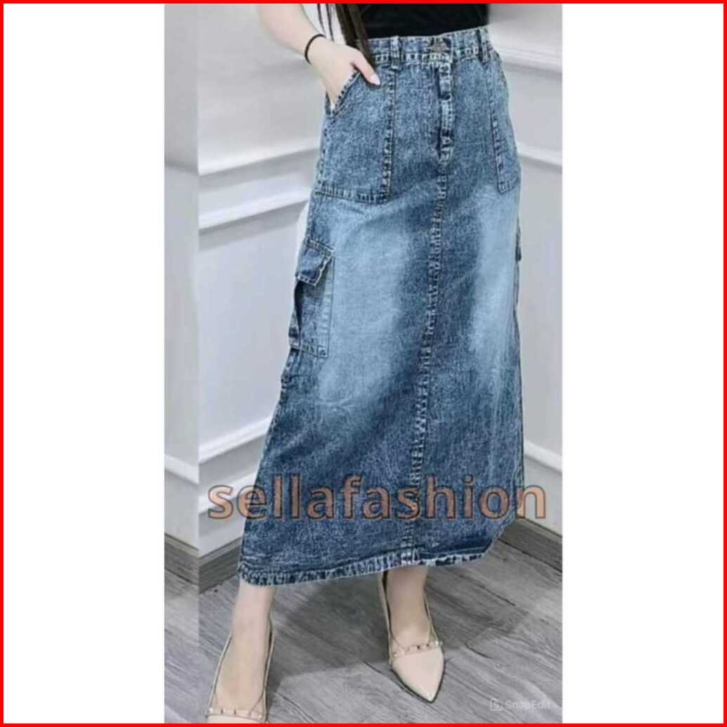 Rok Cargo Wanita Sella Jeans Cargo Rok Jeans A-line Panjang