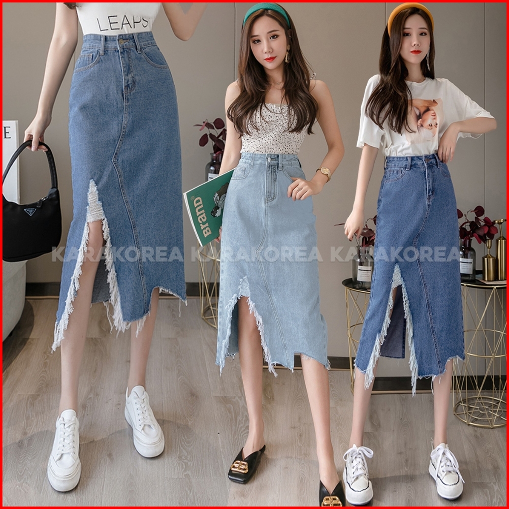 Karakorea 6156 Hyuna Denim Skirt Rok Jeans Wanita Rok Jeans Korea Rok Wanita Rok Jeans Jumbo Ootd Rok Jeans Jeans Wanita