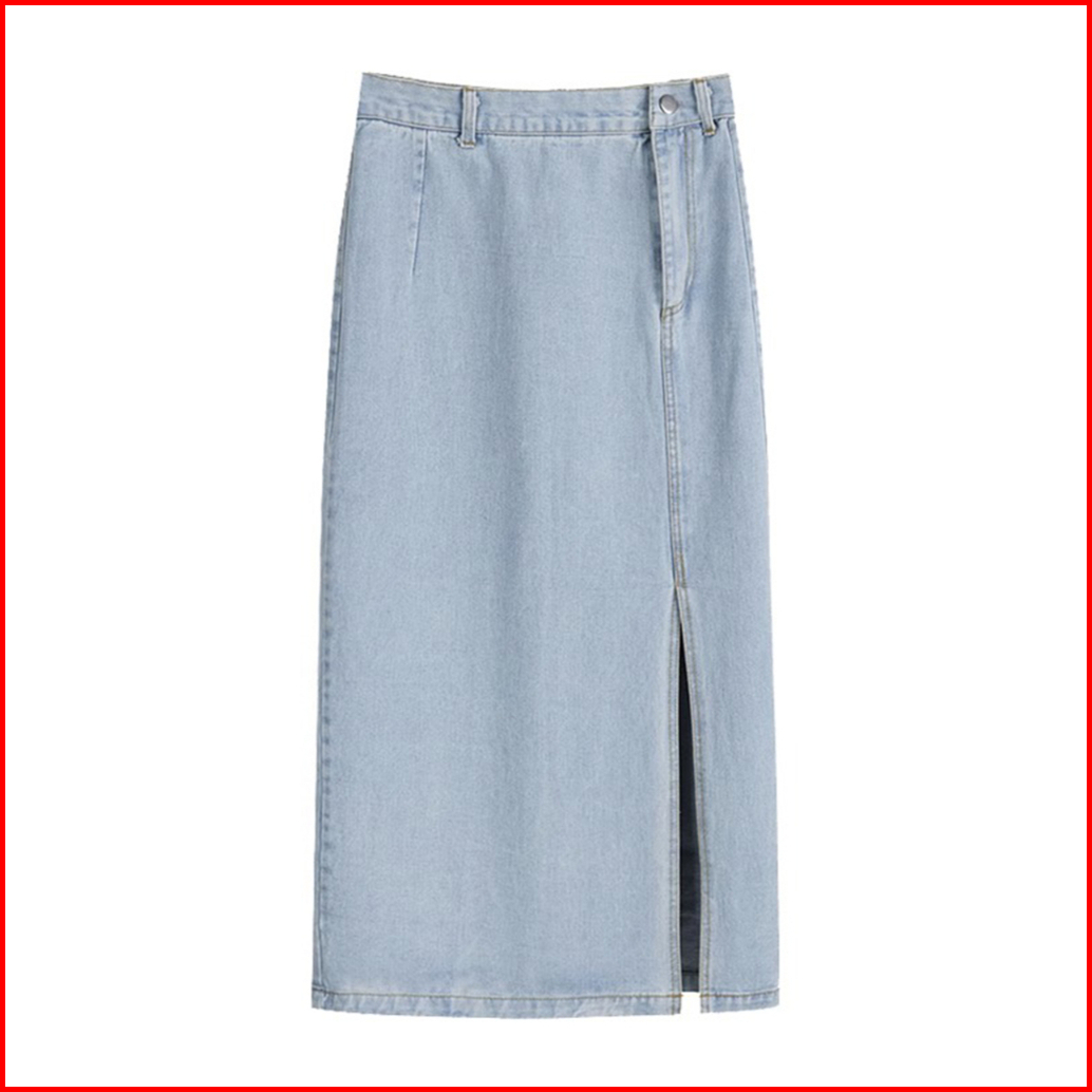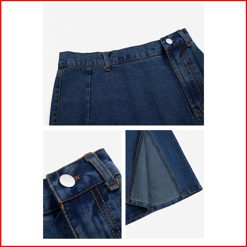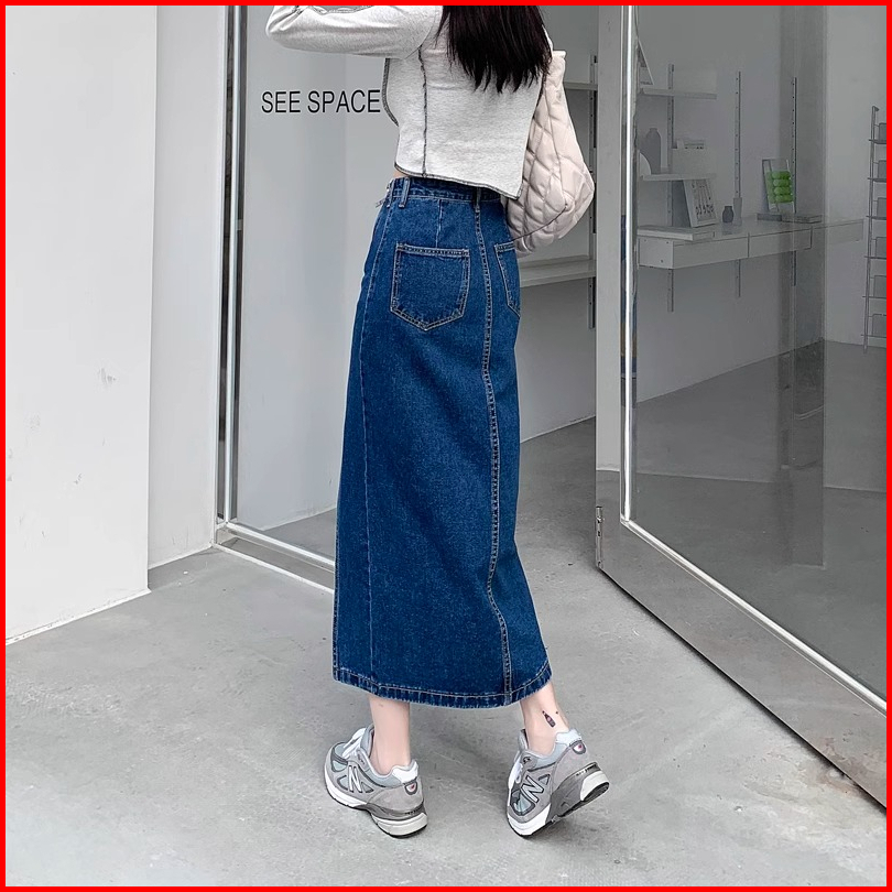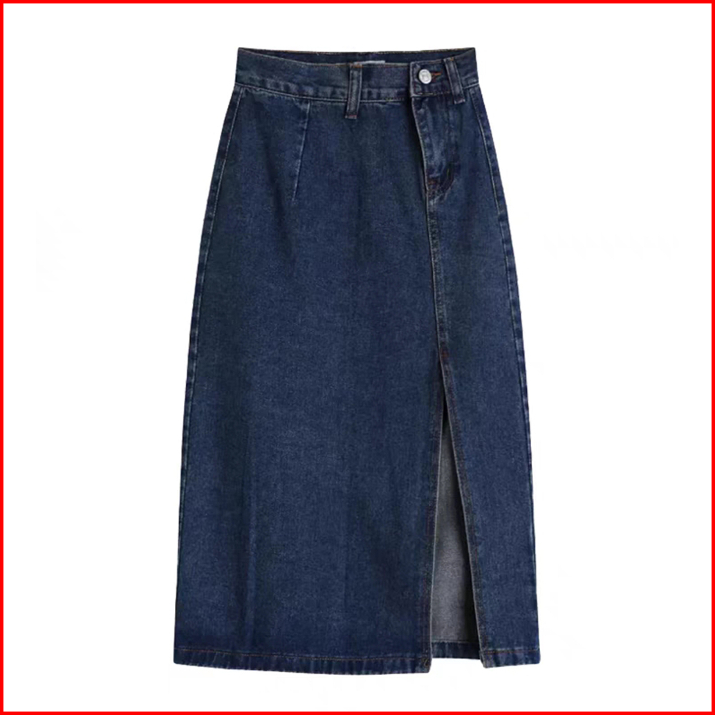 A-line Highwaist Celah Samping Rok Jeans Kekinian