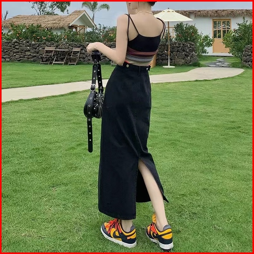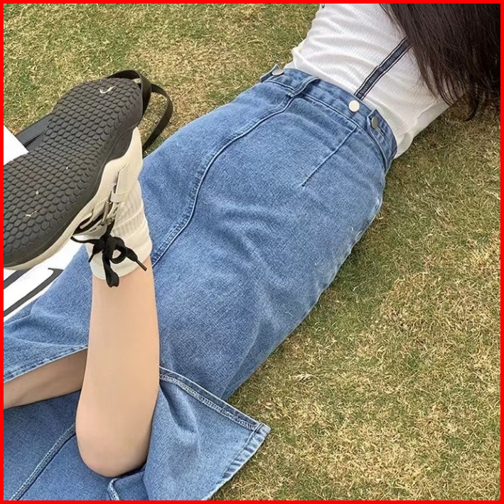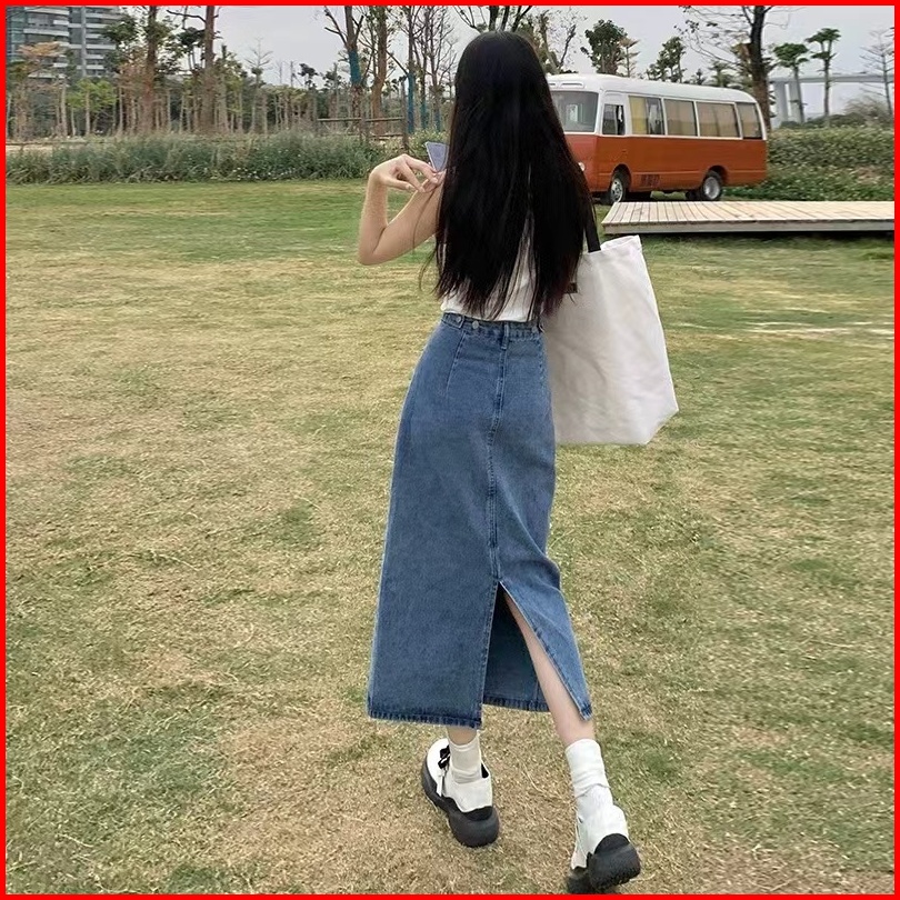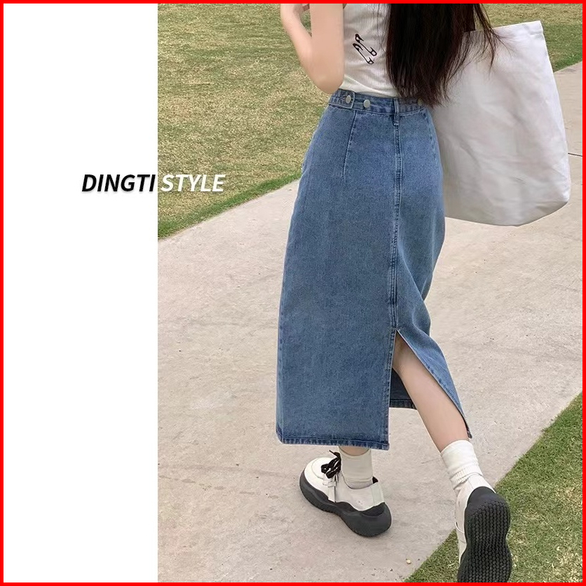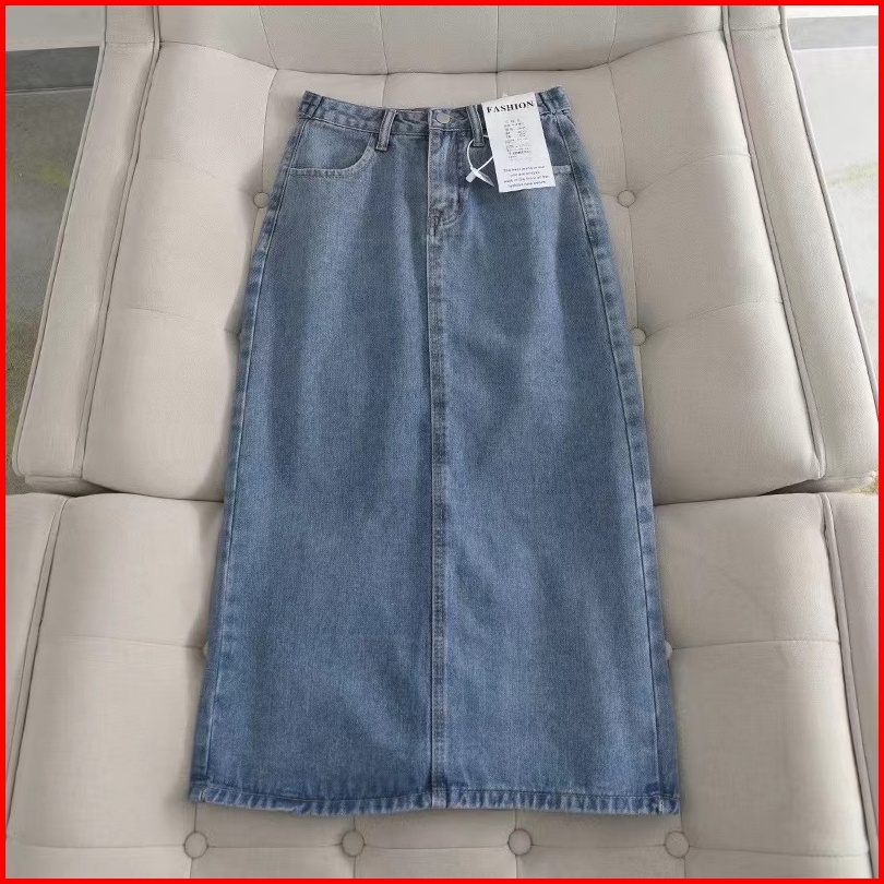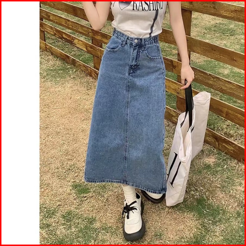 Fashion Wanita Rok Denim Panjang Skirt Korea Rok A Line Rok 7 8 Wanita Rok Span Biru Rok Jeans Midi Kekinian