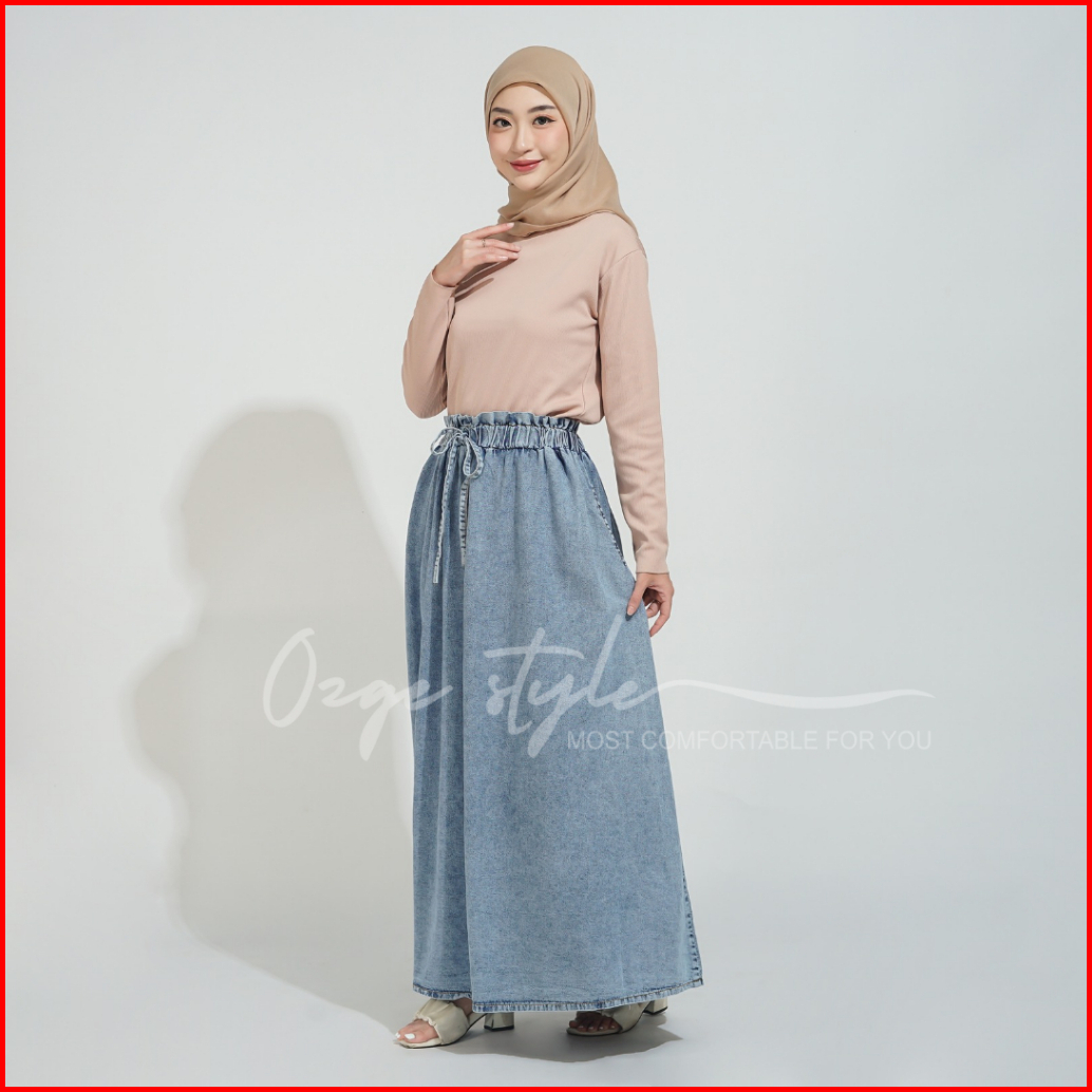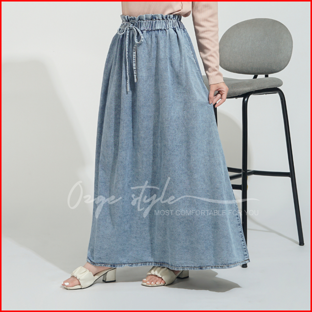Rok Jeans Mayung Panjang Terbaru All Size Jumbo Muat Sampai Xxl