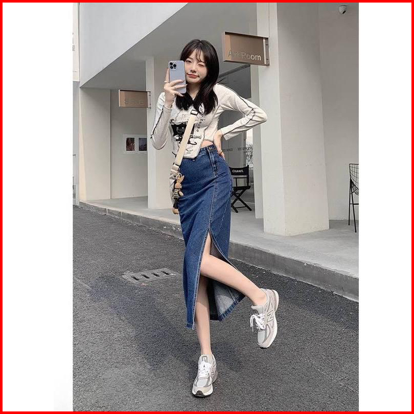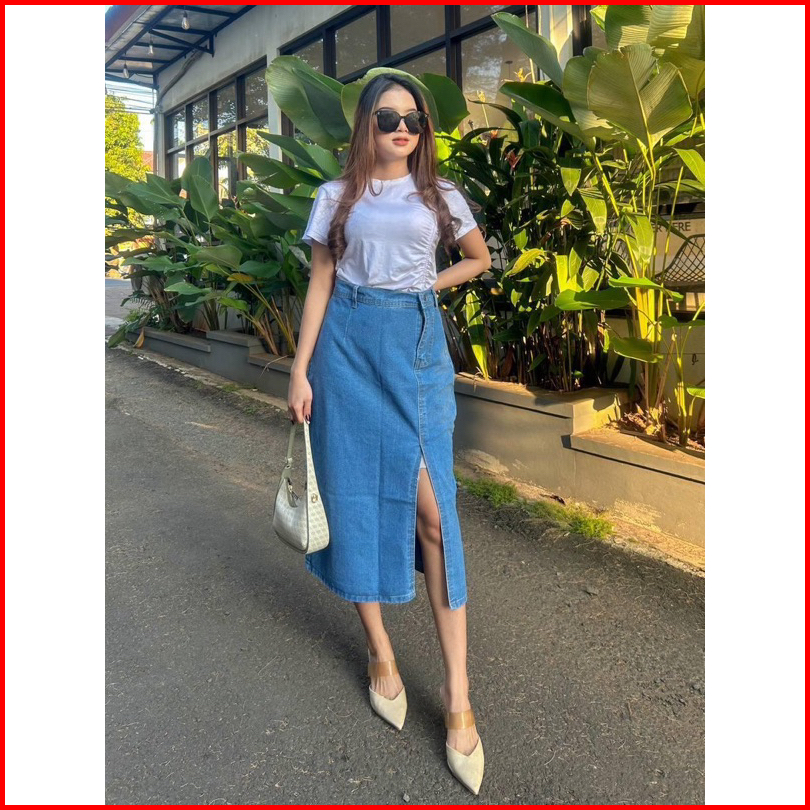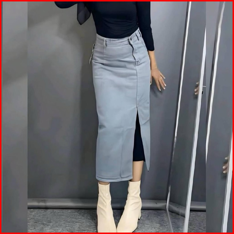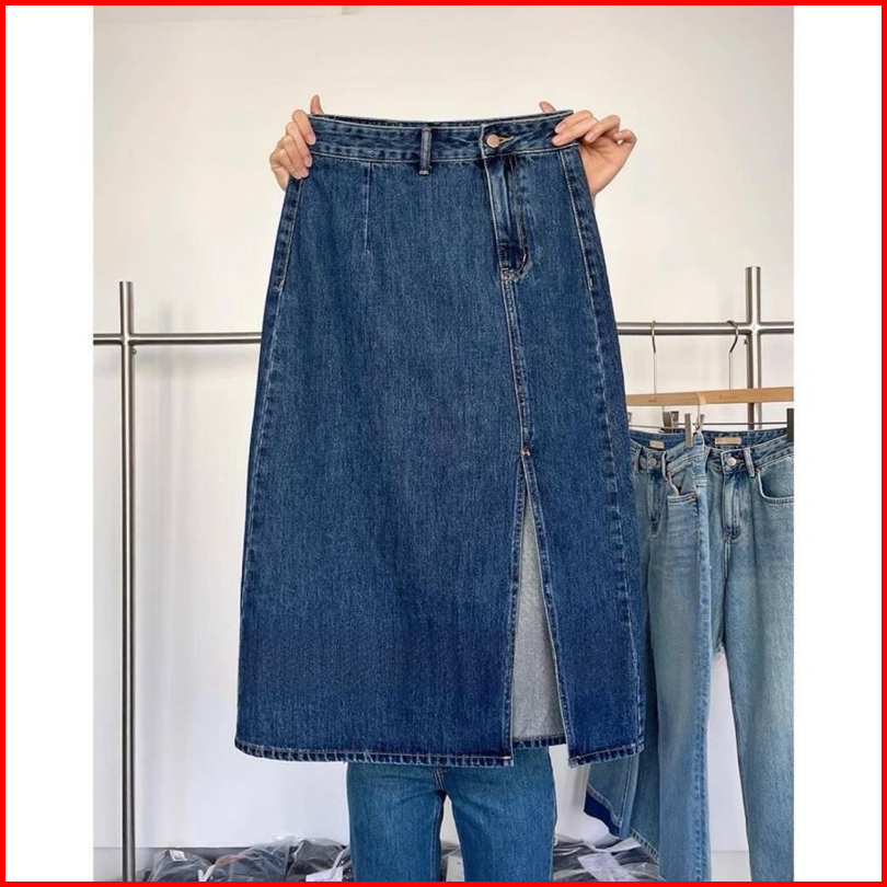 Hundji Rok Jeans Belah Samping - Skirt Korean Style Rok Jeans Wanita Korean Style Rok Jeans 7 8 A-line