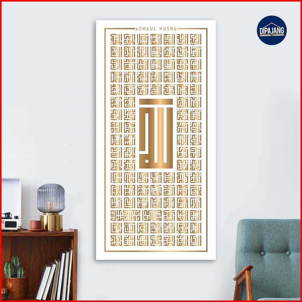 Dipajangid Kaligrafi Hiasan Dinding Asmaul Husna Vertikal Kayu Monochrome 40x80 Cm - Ks044 Pajangan Dekorasi Ruang Tamu