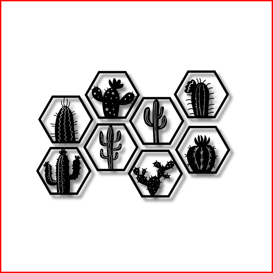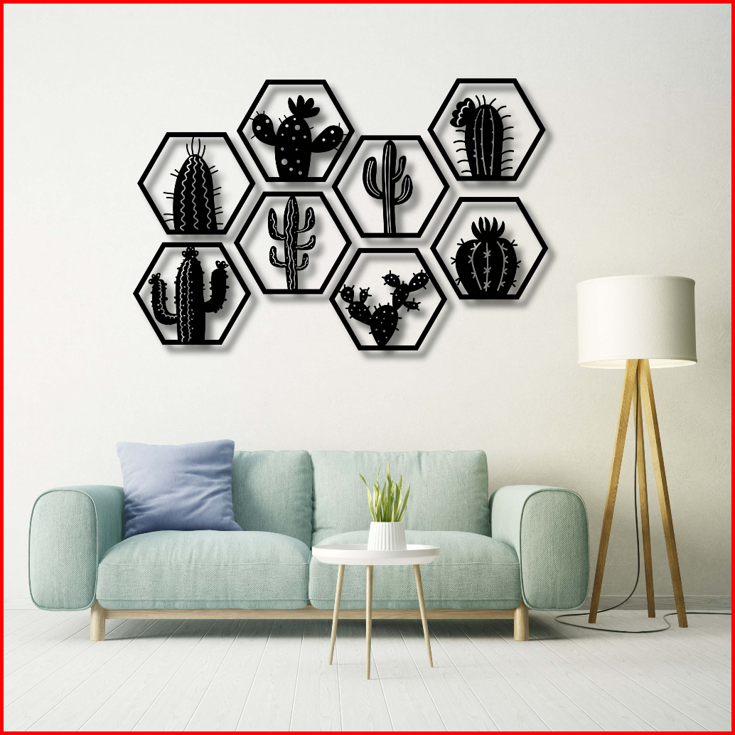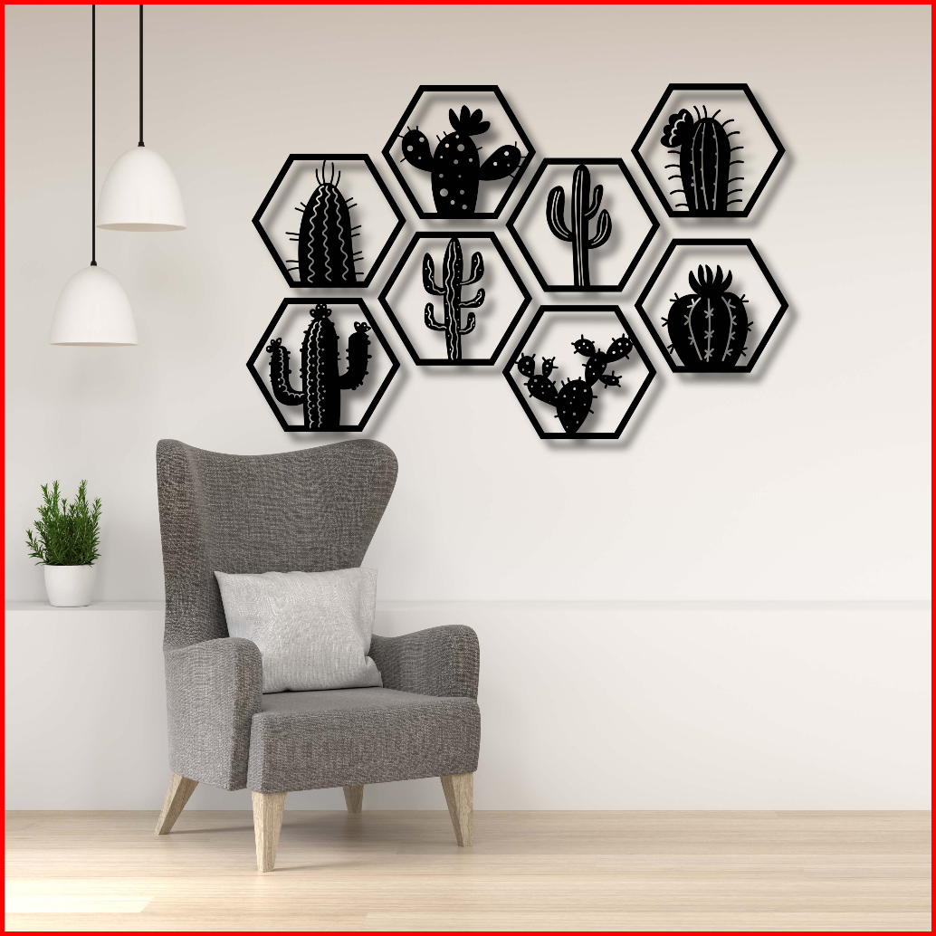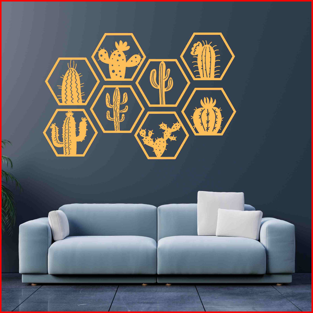 Kreasi Kayu 3d Hexsagonal Kaktus 1set 8 Pcs Wall Decor Hiasan Dinding