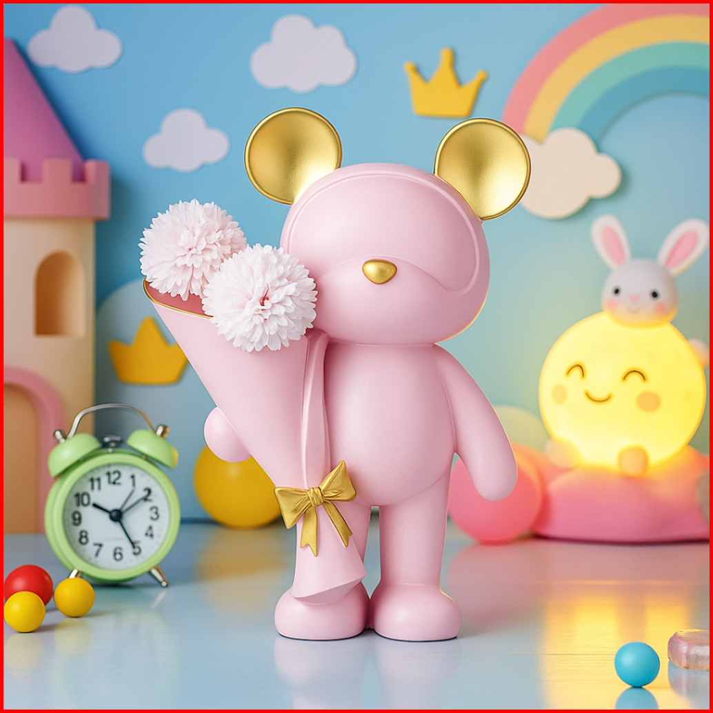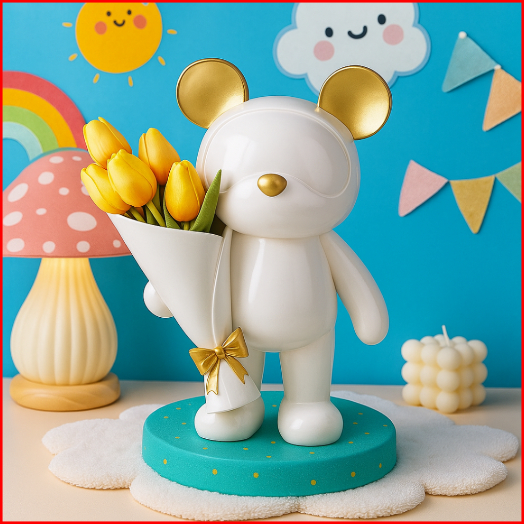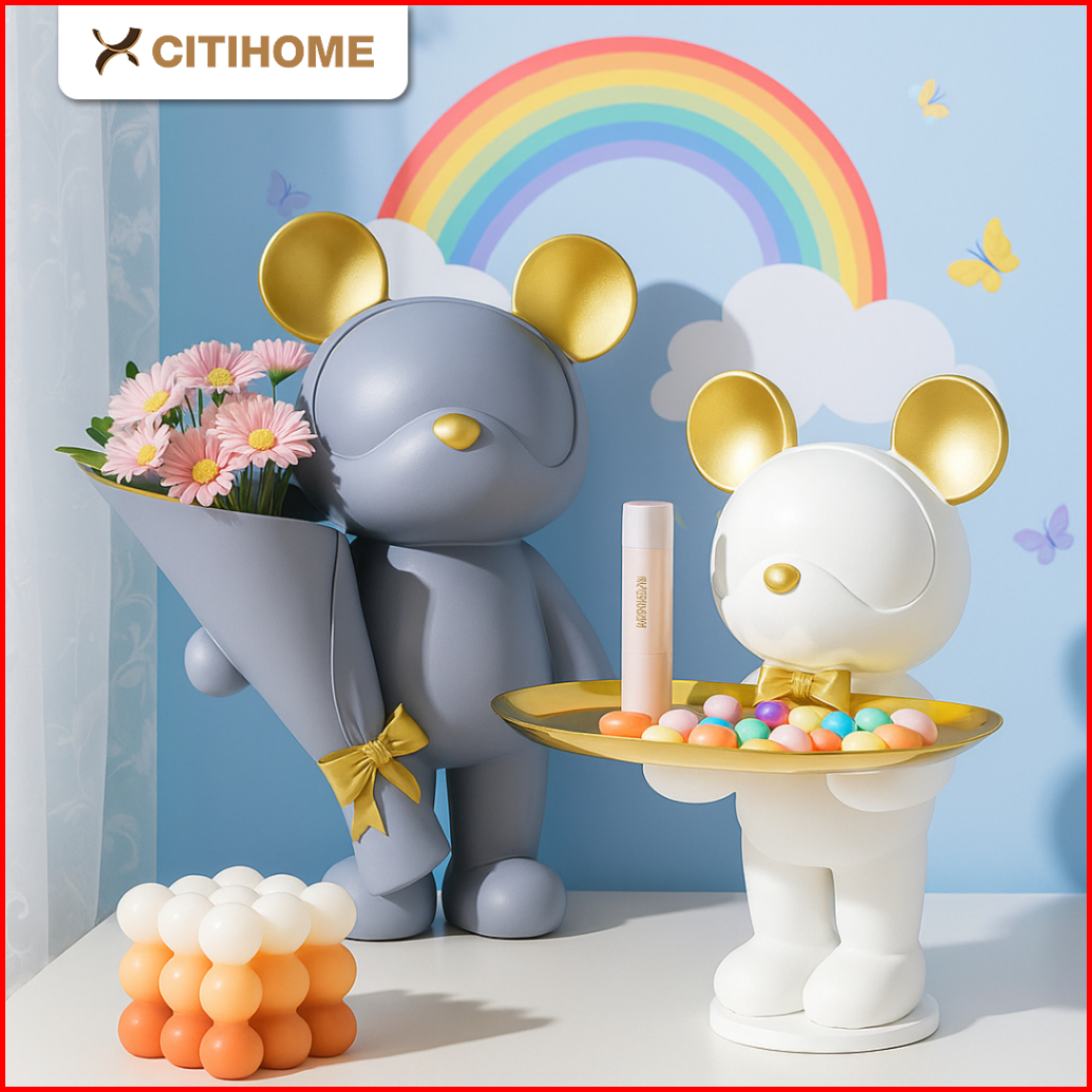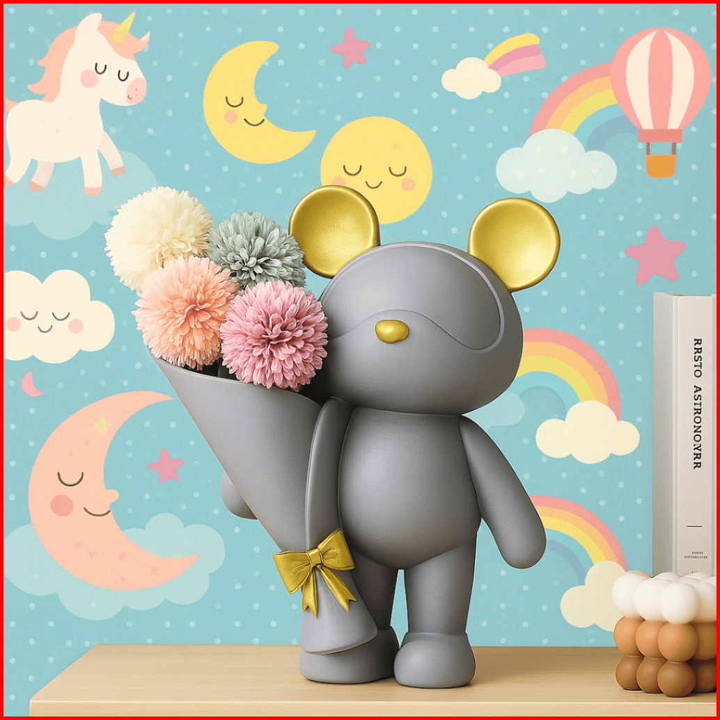 Patung Hias Space Mickey Multifungsi Dengan Nampan Dan Vas Bunga Dekorasi Ruang Tamu Elegan