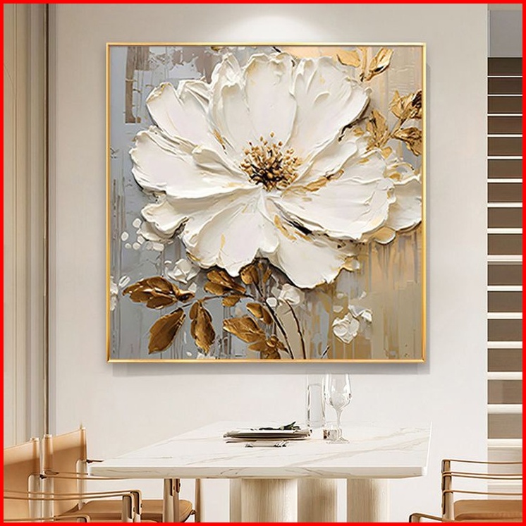 Lukisan Bunga Mawar Putih Persegi Teksture Tebal Modern Art