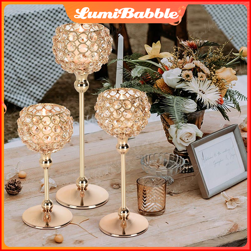 Tempat Lilin Kristal 3 Tingkat Dengan Percikan Api Sparklers Untuk Candelabra Pernikahan-elegant Crystal Candle Holder