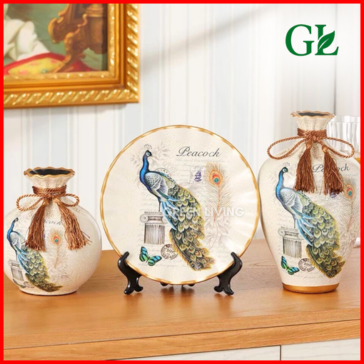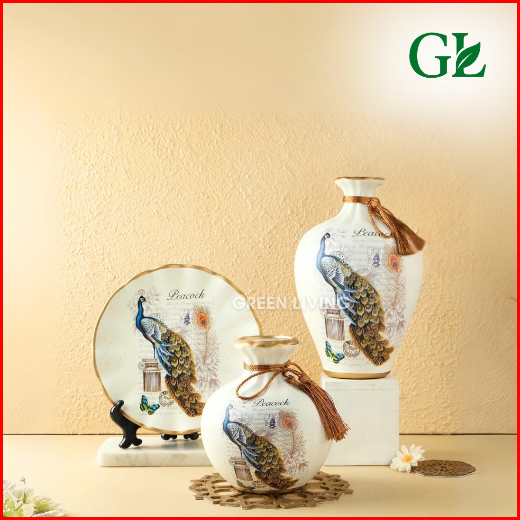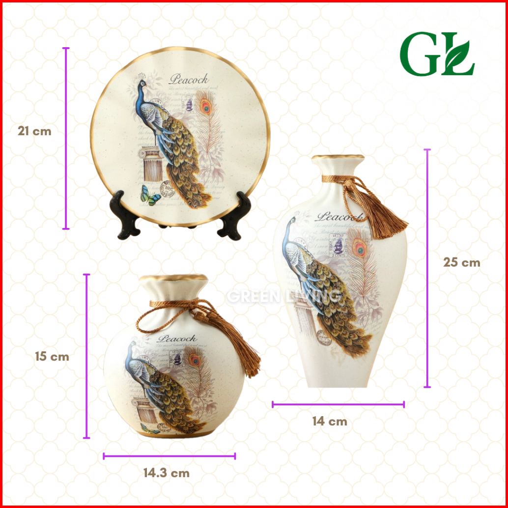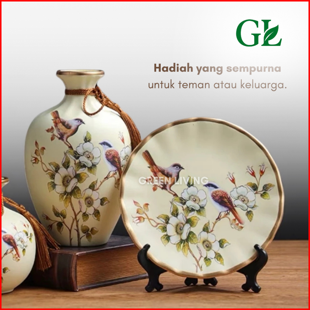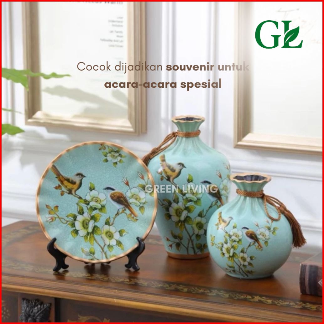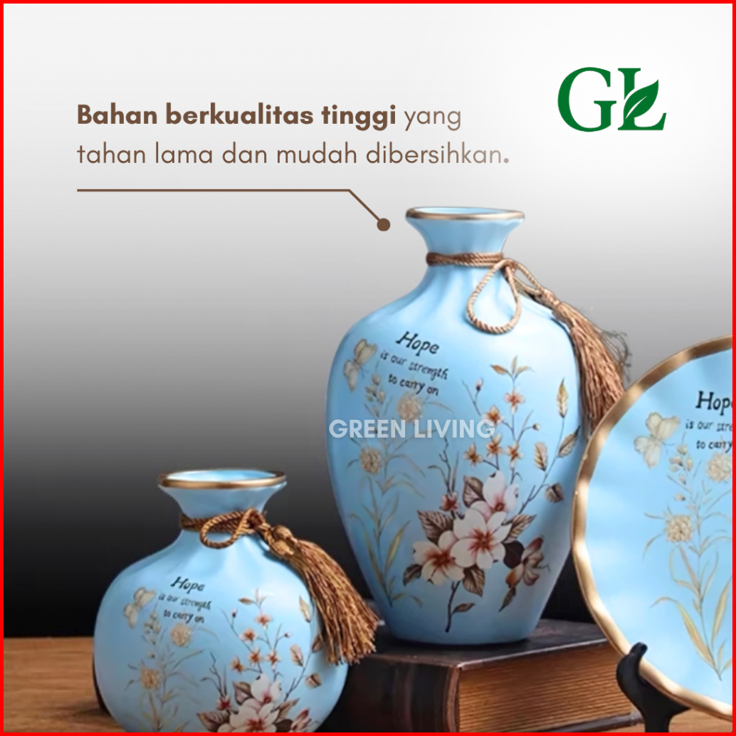 Green Living Dekorasi Vas Bunga Blossom Putih Eropa Retro Set 3 Pcs - Pajangan Hiasan 3in1 Decor Klasik Dekor Ruangan Ru