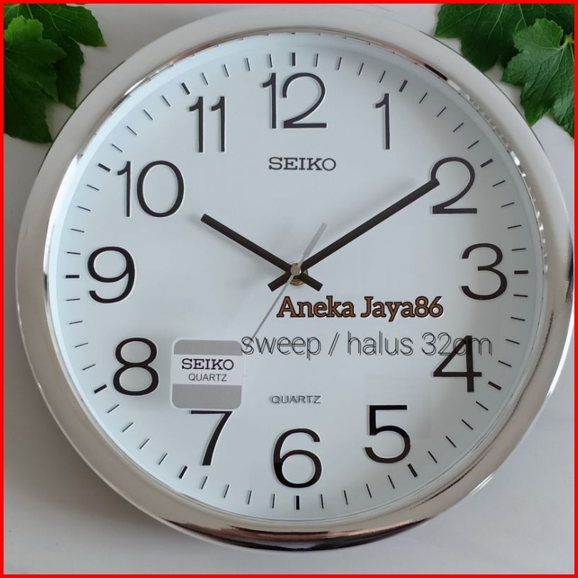 Jam Dinding Seiko 32cm Sweep Silent Halus Chrome Stainles Putih