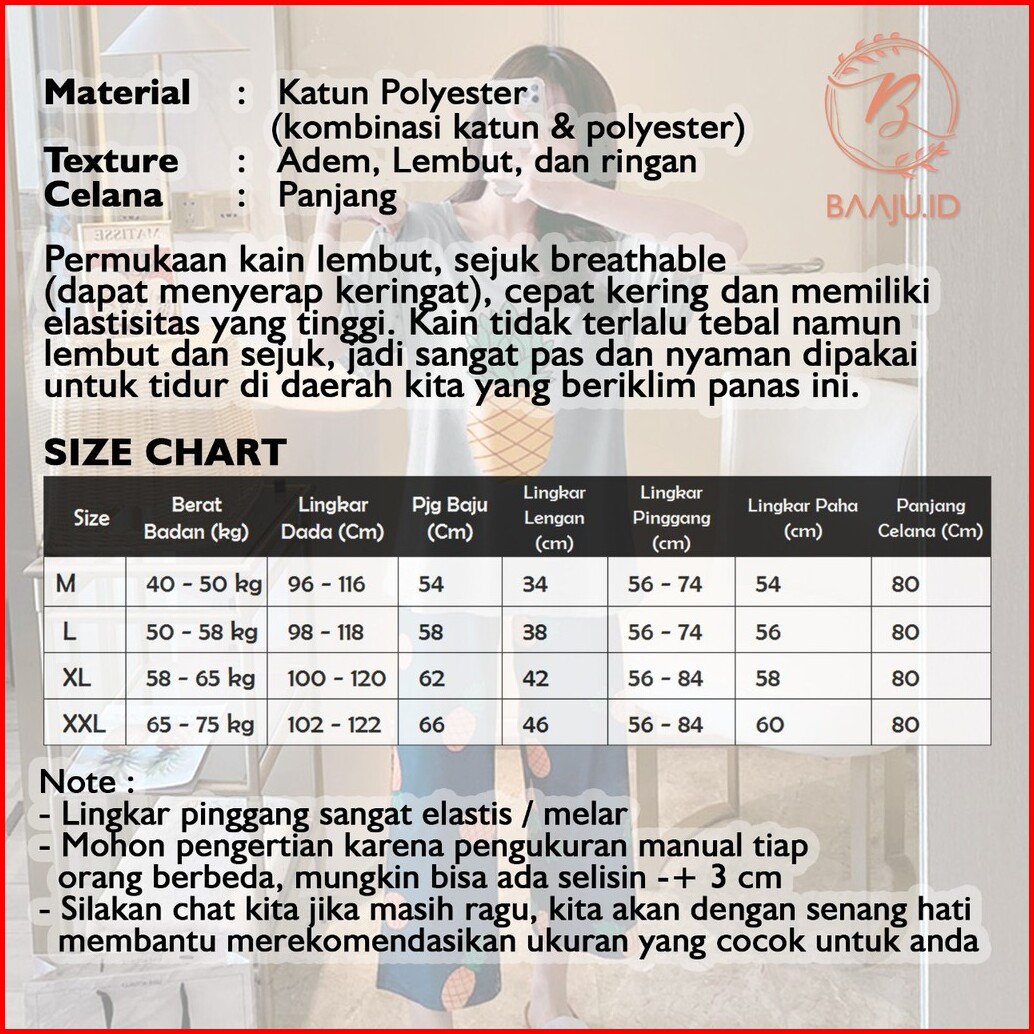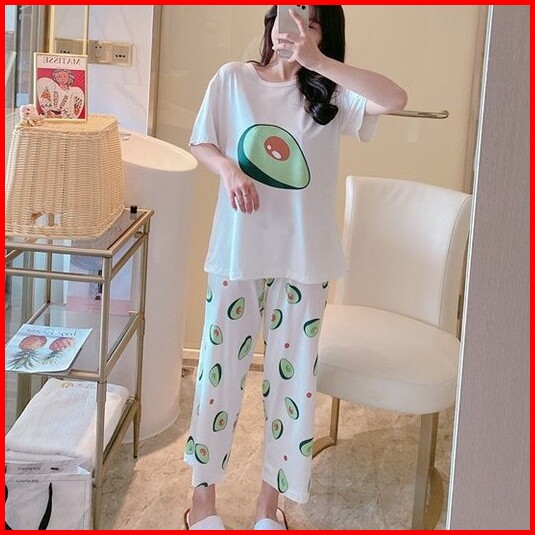 Piyama Import Motif Kartun Baju Tidur Wanita Lengan Pendek Celana Panjang 7 8 Kr1006