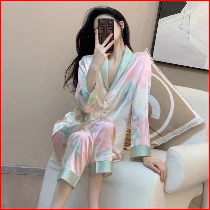 2025 Piyama Baru Betina Wanita Kurus Longgar Lotus Pendek -lengan Panjang -sleeved Celana Panjang Dua Set -piece Set