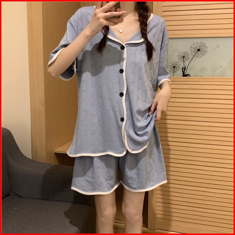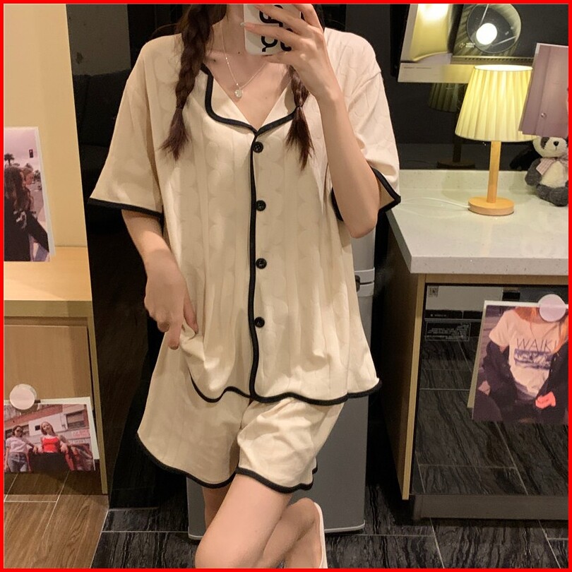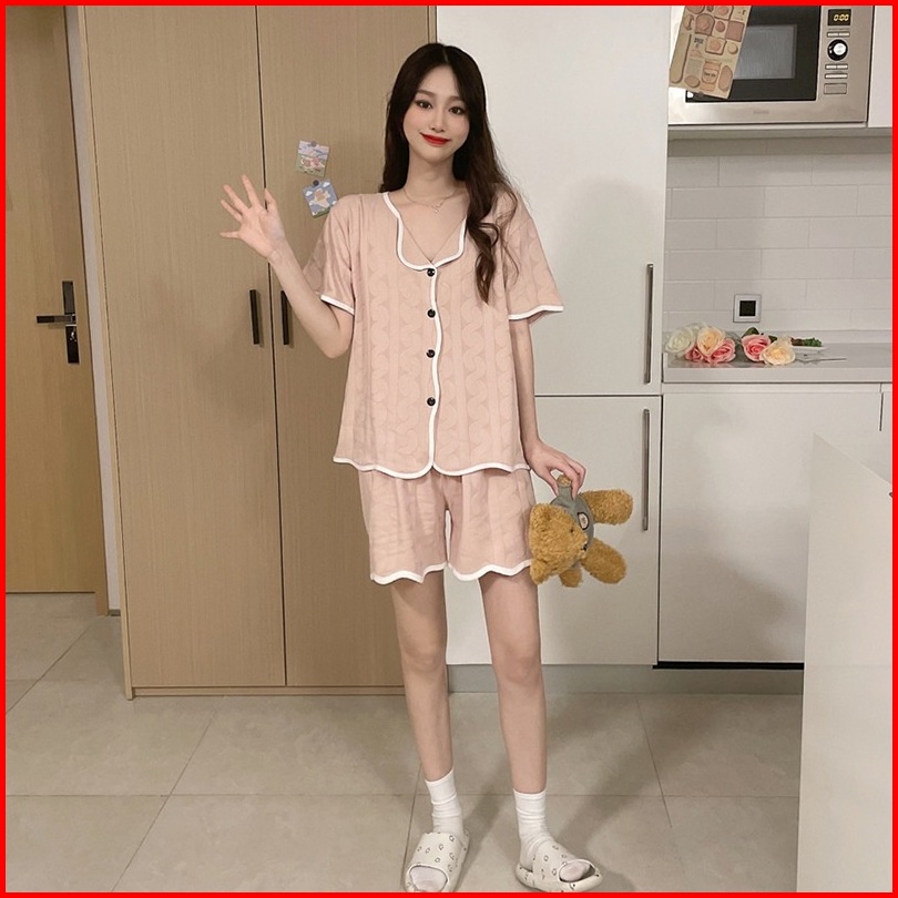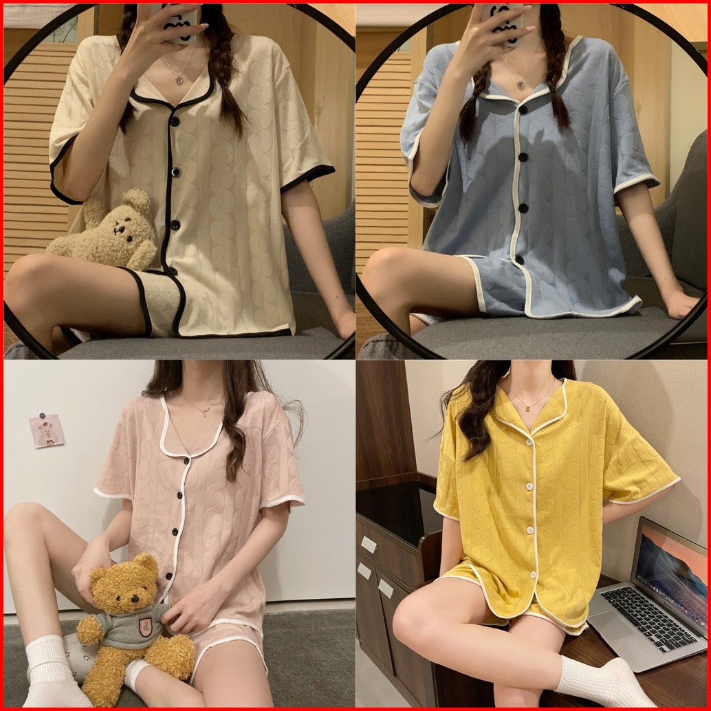 Baju Tidur Piyama Wanita Chaerim Short Sleepwear Lengan Pendek Celana Pendek Motif Polos Setelan Kasual