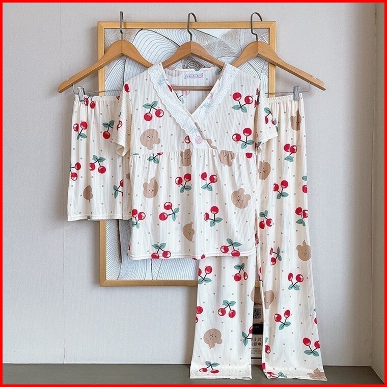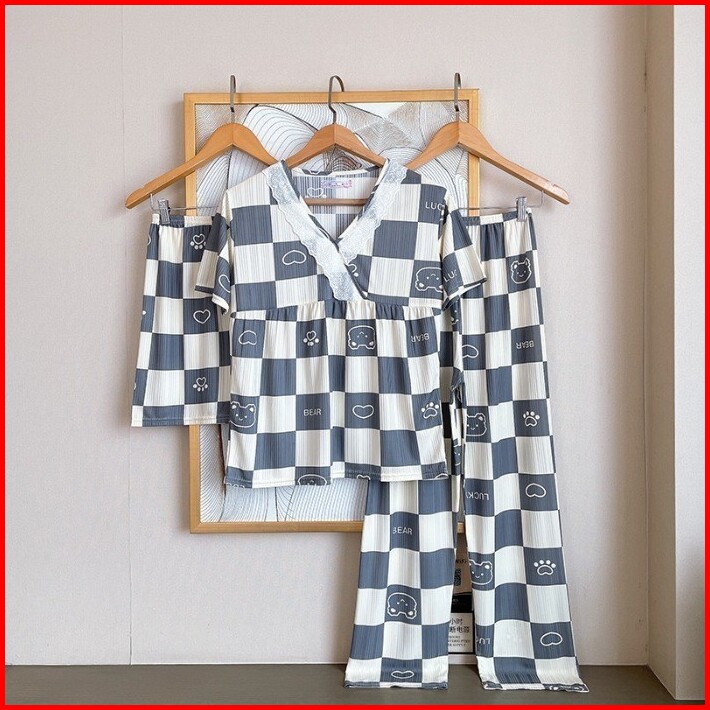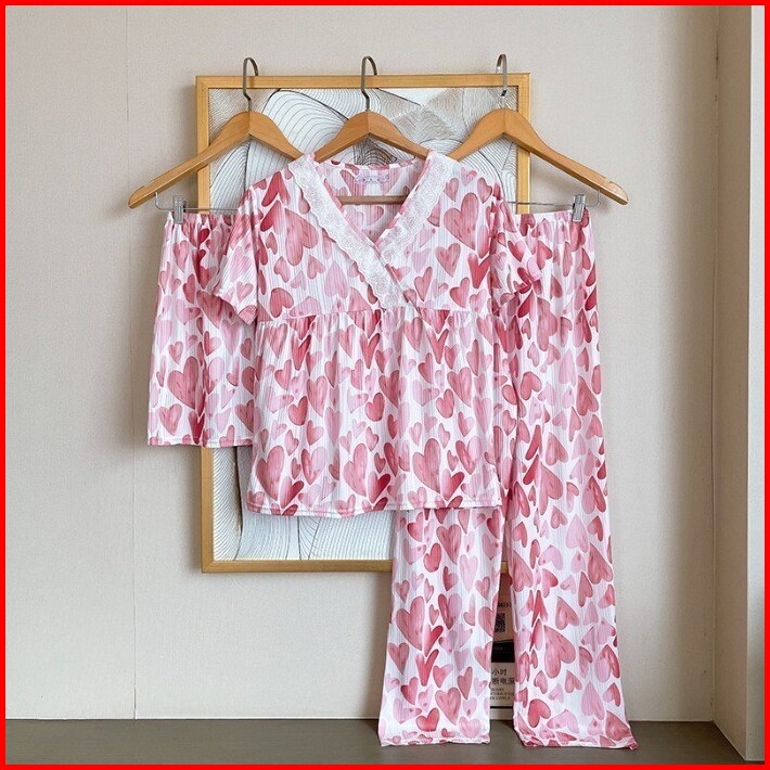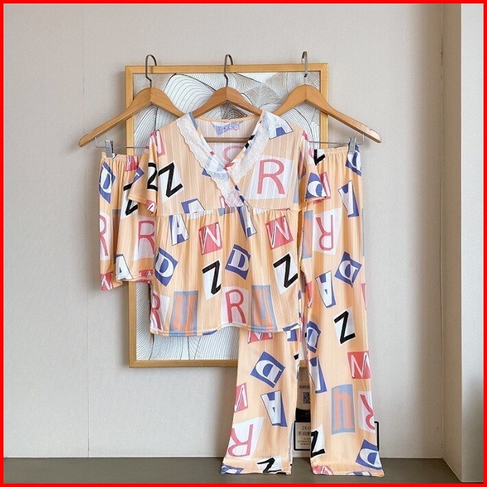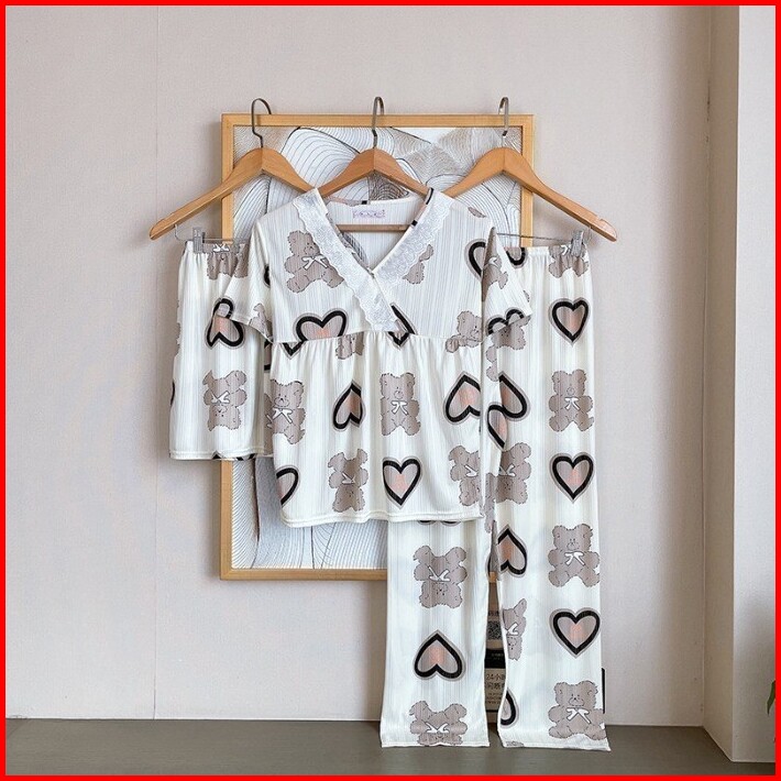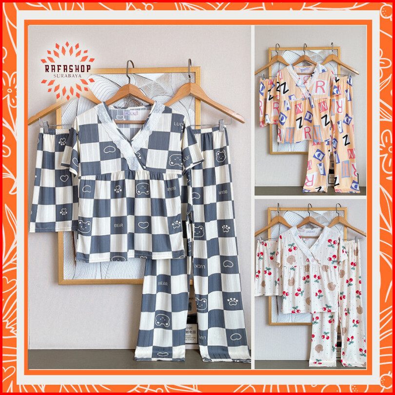 Undr025 Baju Tidur Wanita Renda Import 3 In 1 Pajamas Wanita Celana Panjang Free Celana Pendek Piyama Wanita Dua Celana
