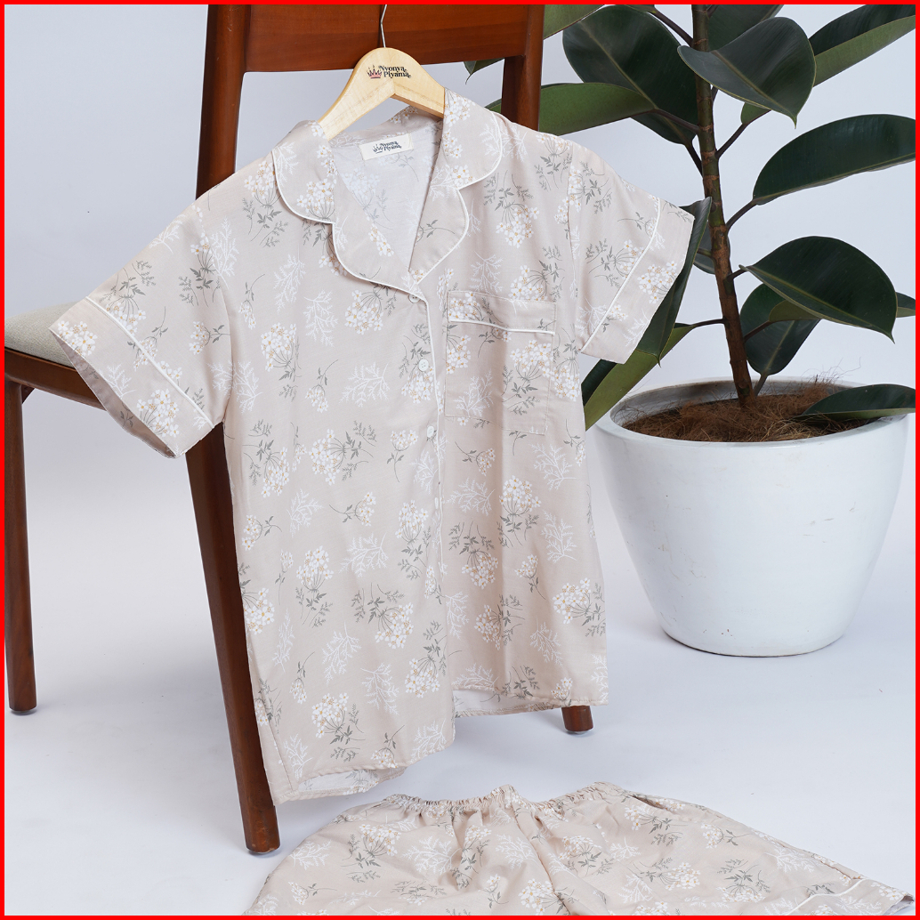 Nyonya Piyama Set Katun Classic Salvia Latte