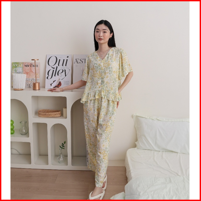 Felfe - Aubrey Green Piyama Celana Panjang Premium Rayon Wanita