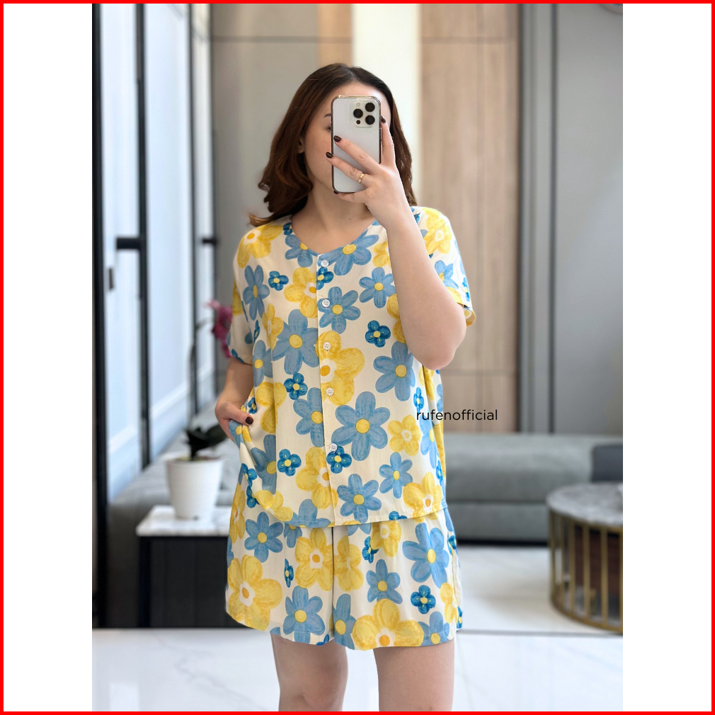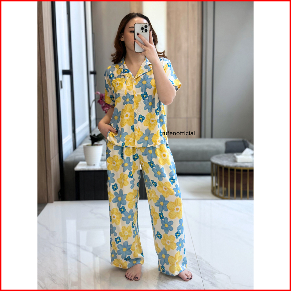 Rufen Setelan Celana Pendek Baju Tidur Wanita Midi Dress Wanita Bahan Rayon