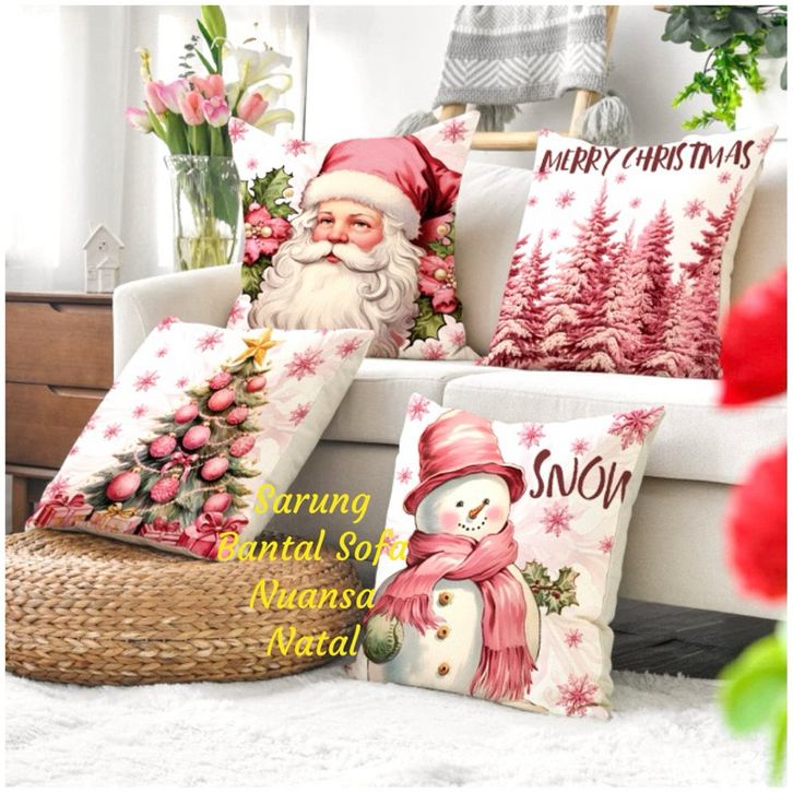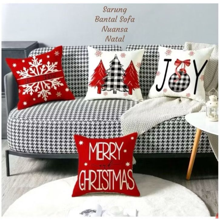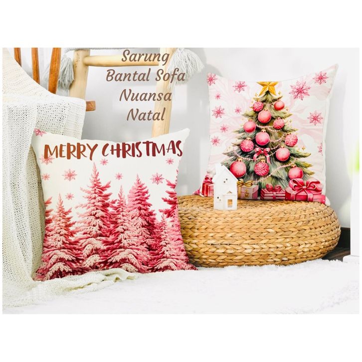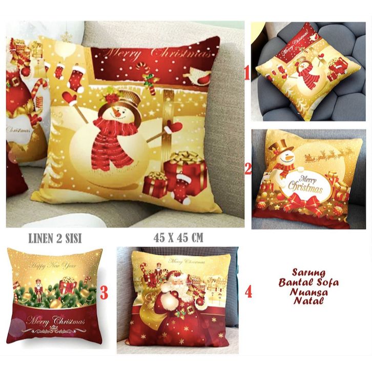 45 x 45 TANPA BANTAL Sarung Bantal Sofa Nuansa Natal RAMI Christmas Decoration Dekorasi Natal