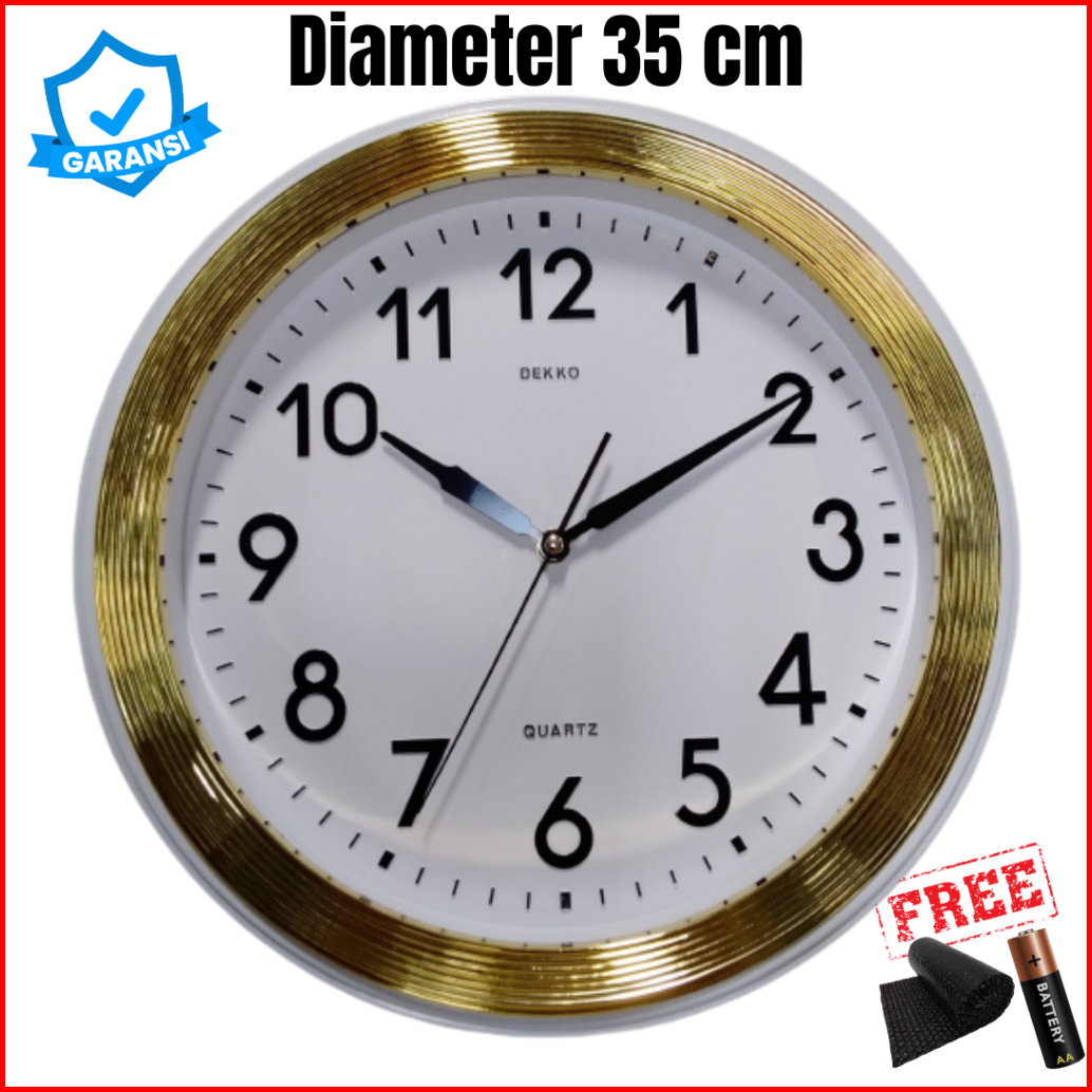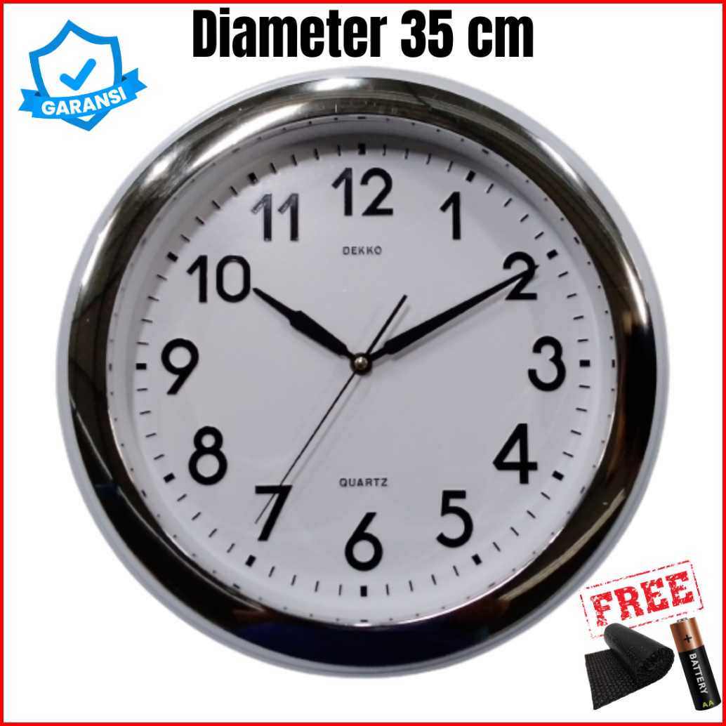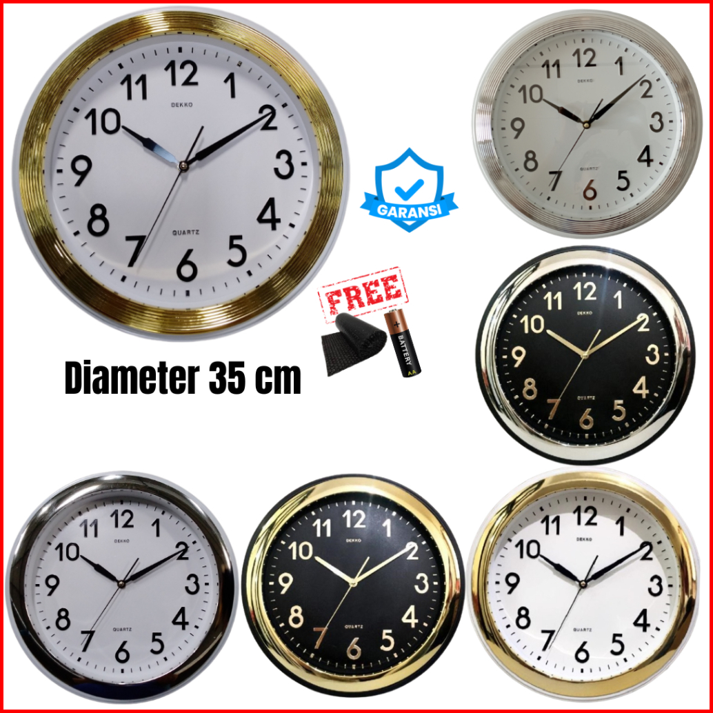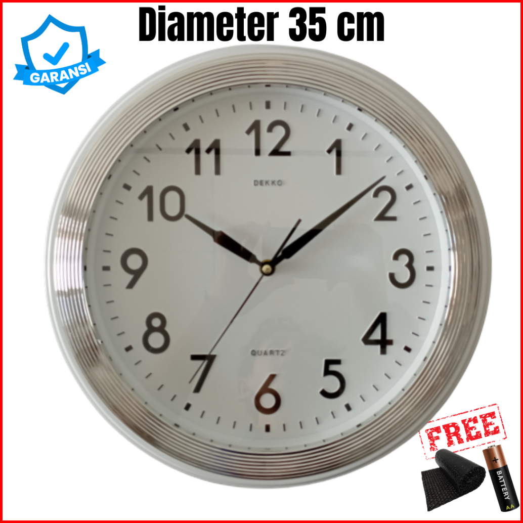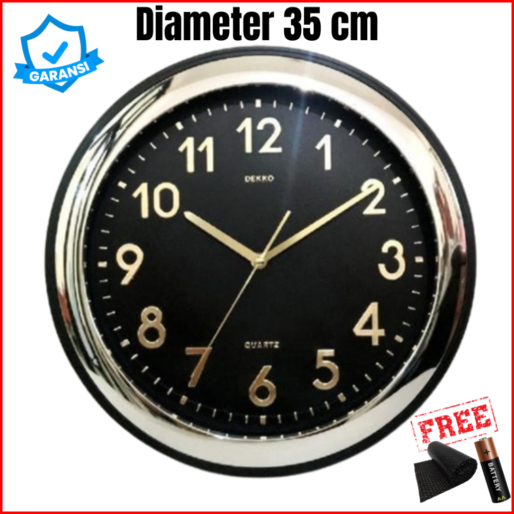 Jam Dinding Dekko 1208 1219 Diameter Jumbo 35cm Mewah Elegant Aesthetic Black White Silver