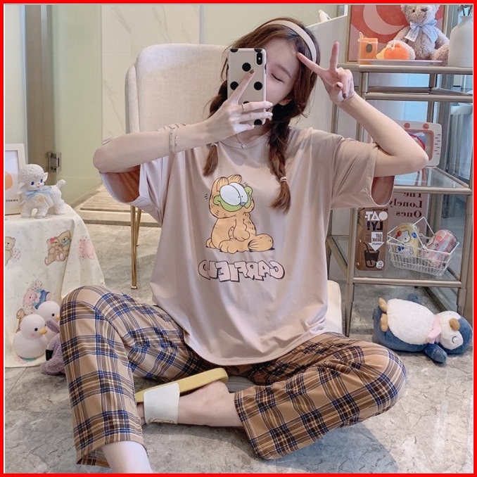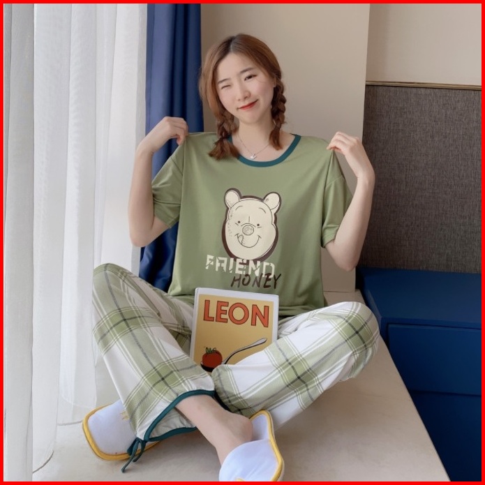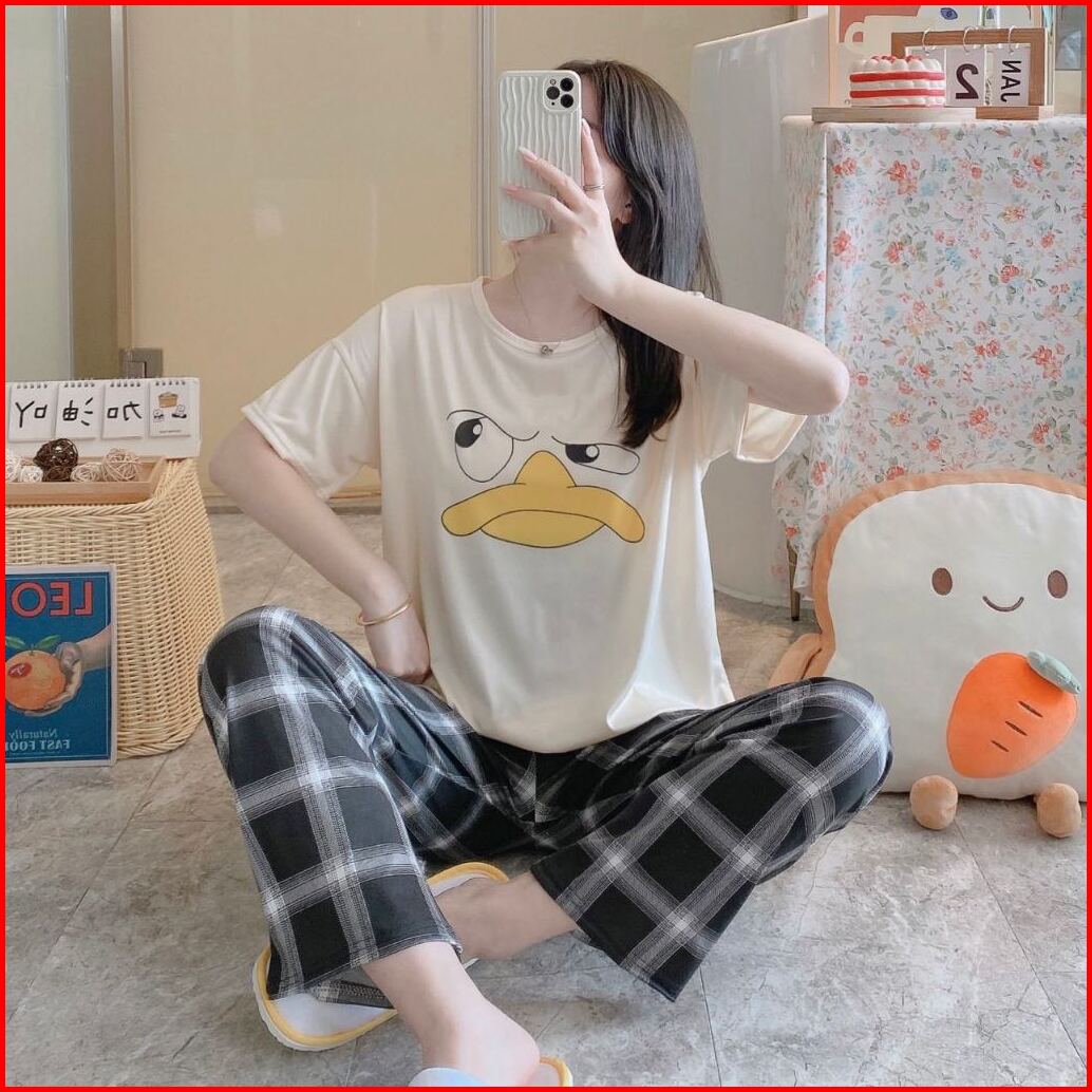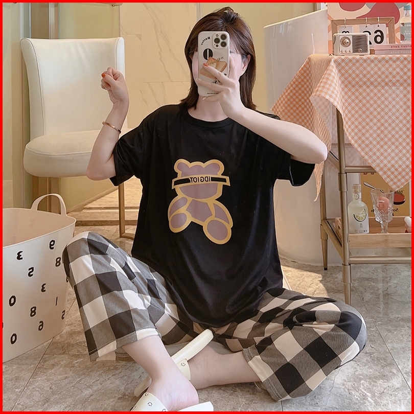 Tteuda Baju Tidur Piyama Set Piyama Lengan Pendek Spandek Import Piyama Kartun Import Kode A