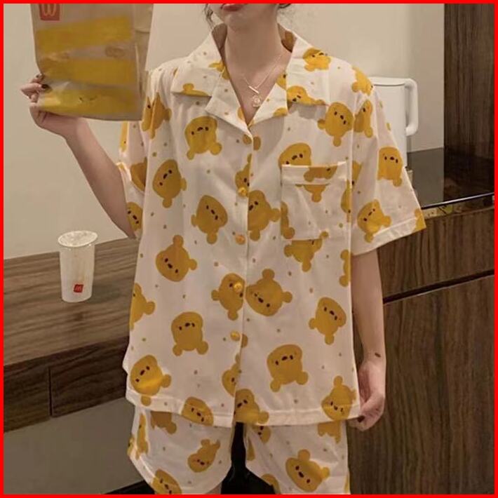 Ybs.id Piyama Wanita Dewasa Baju Tidur Motif Karakter Lucu Cocok Untuk Remaja Perempuan Model Kemeja Full Kancing Big Si