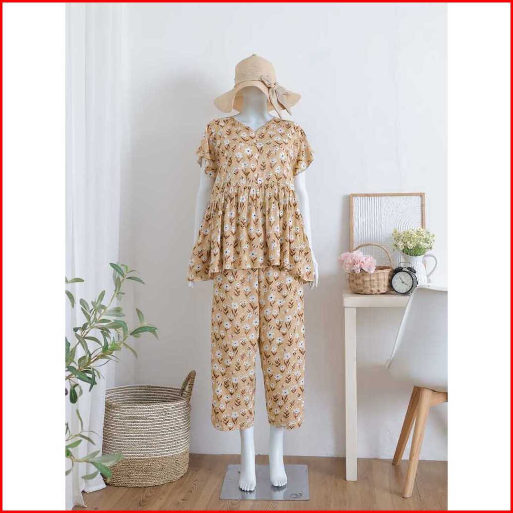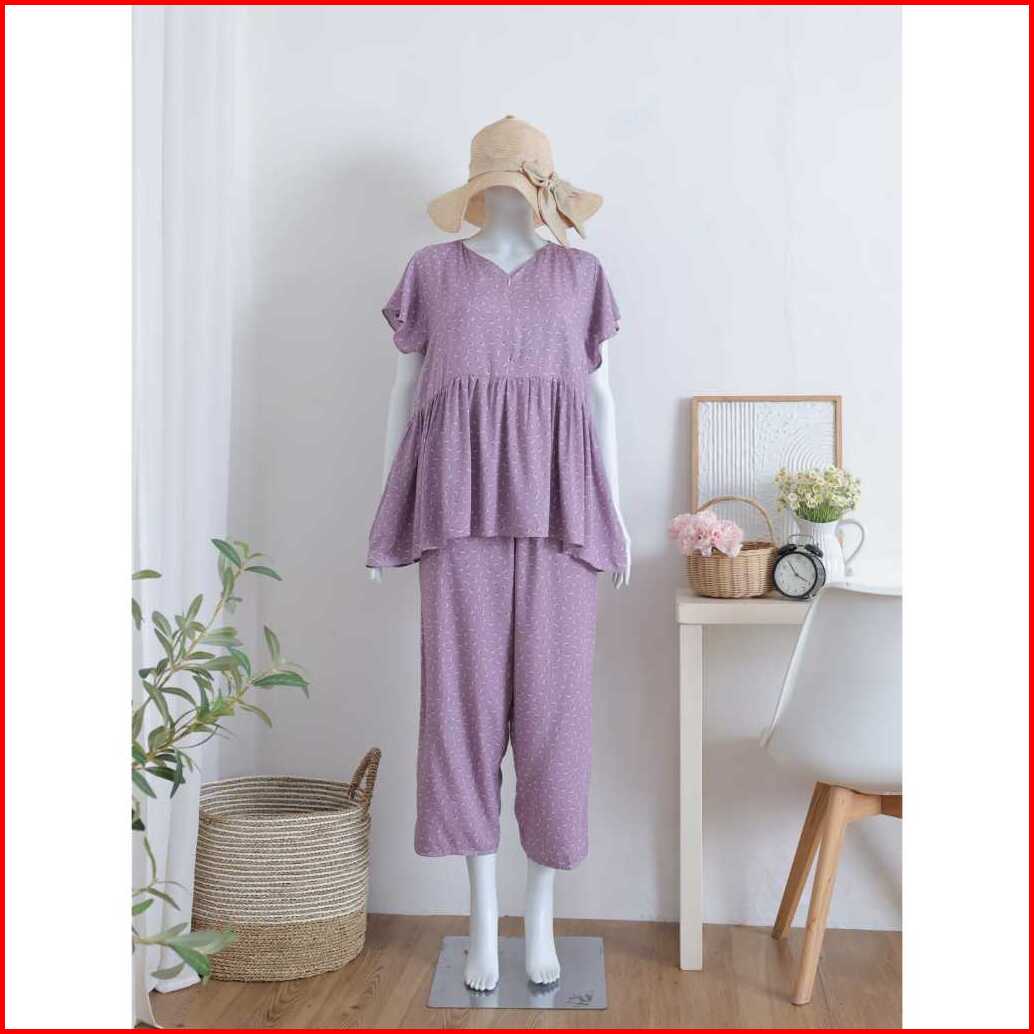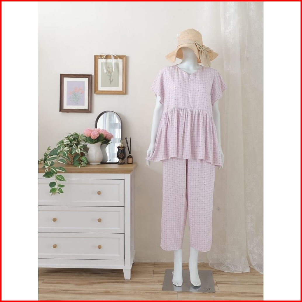 Baby Doll Pajamas Ruffle Busui Piyama One Set Setelan Baju Tidur Rayon