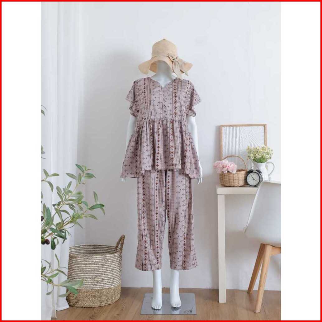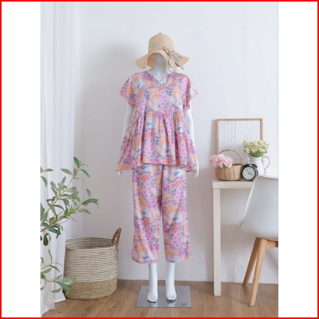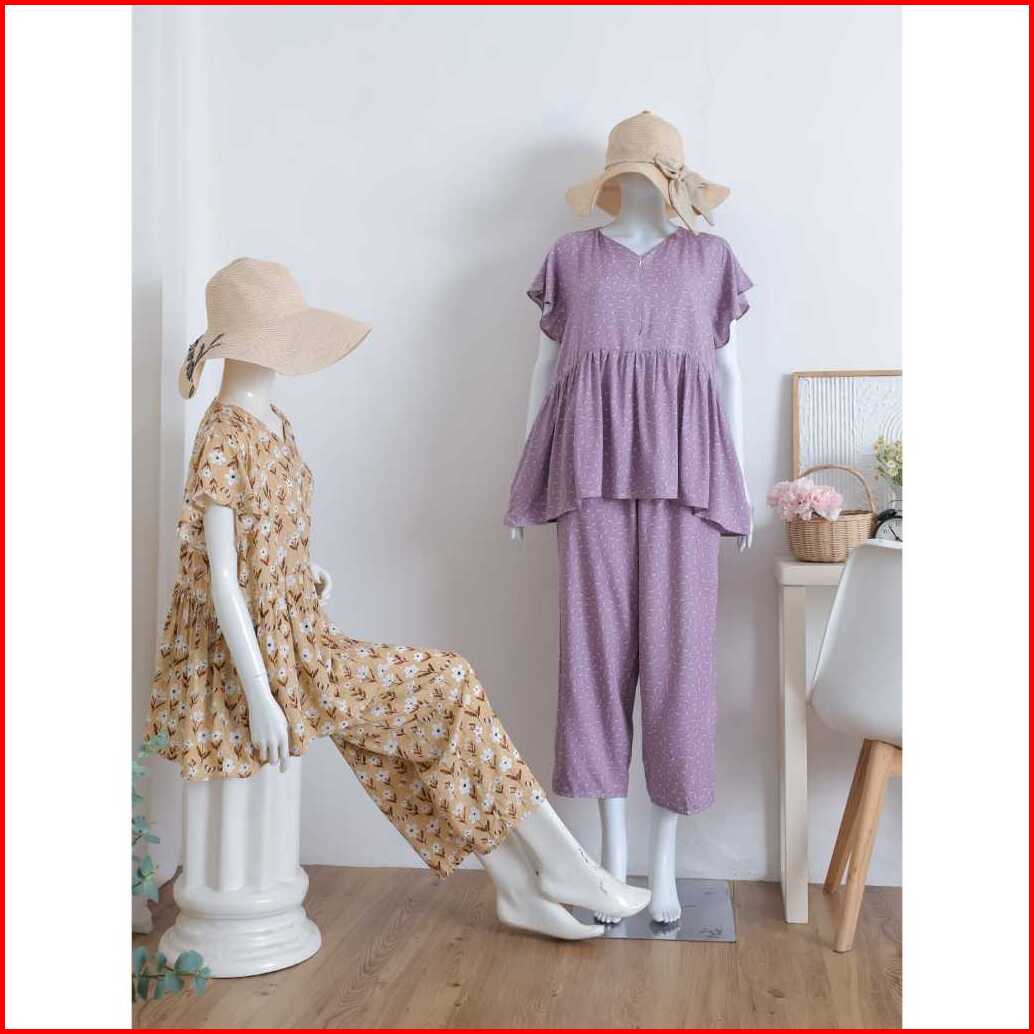 Baby Doll Pajamas Ruffle Busui Piyama One Set Setelan Baju Tidur Rayon