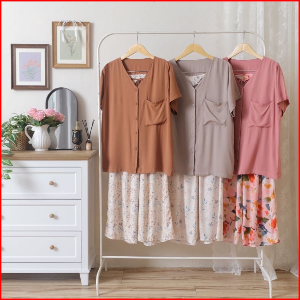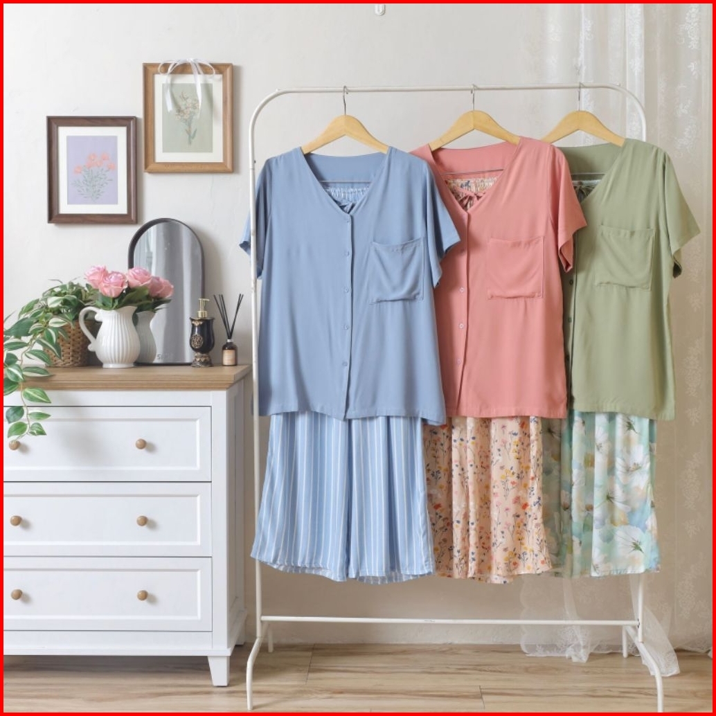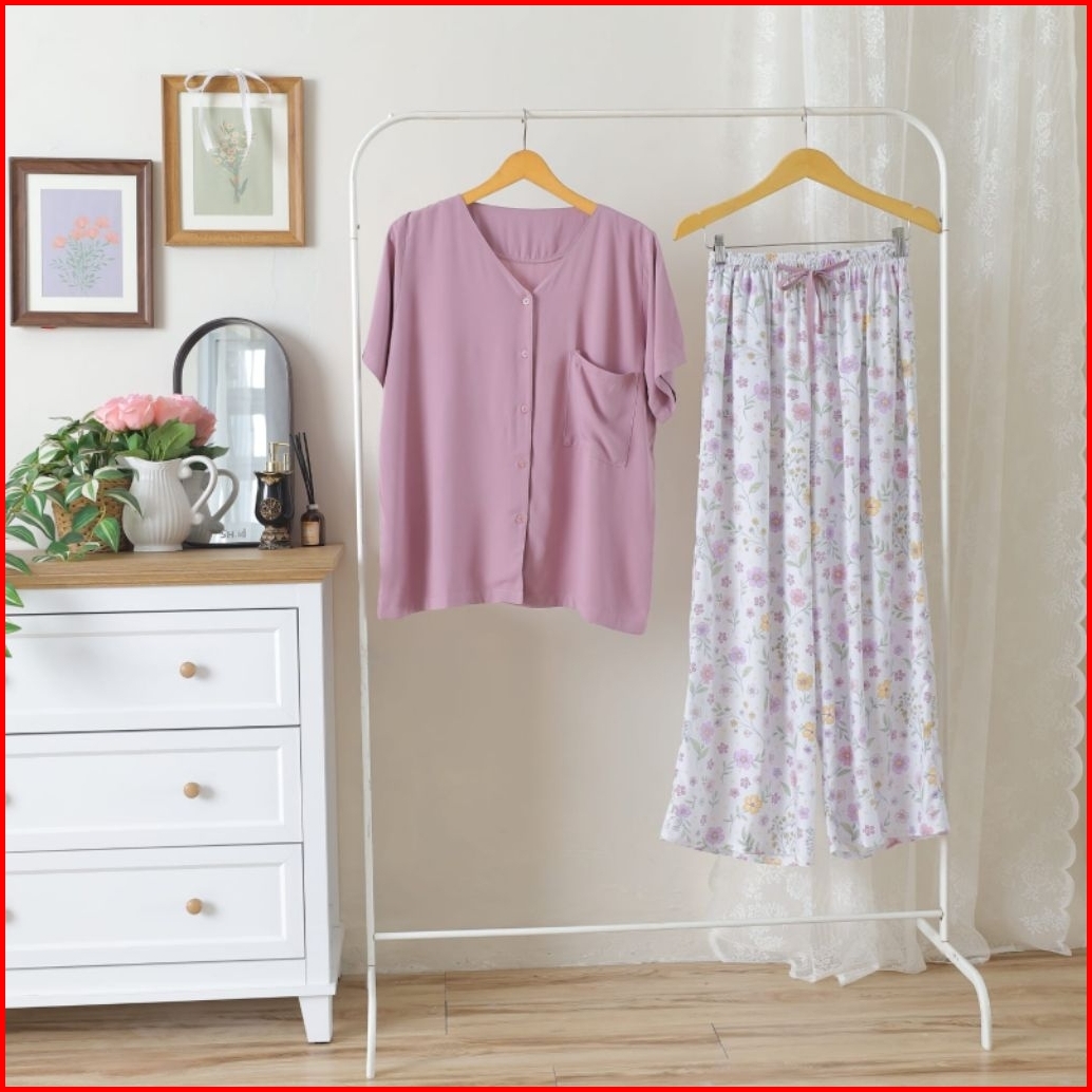 Laura One Set Wanita Piyama Pajamas Rayon Busui Model Kulot