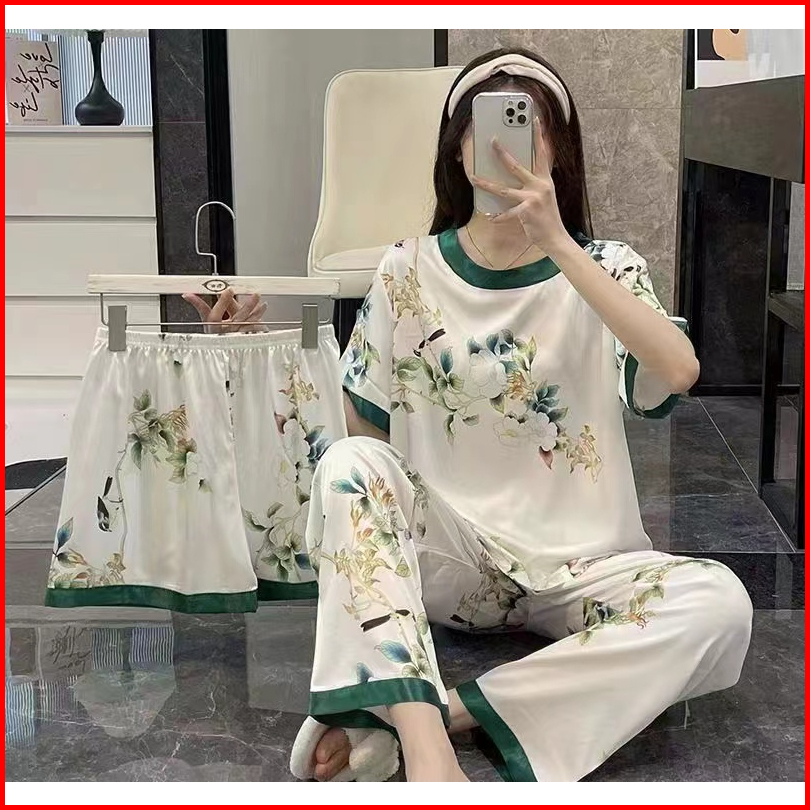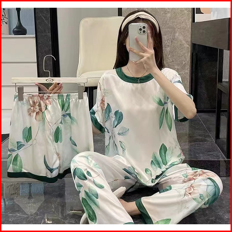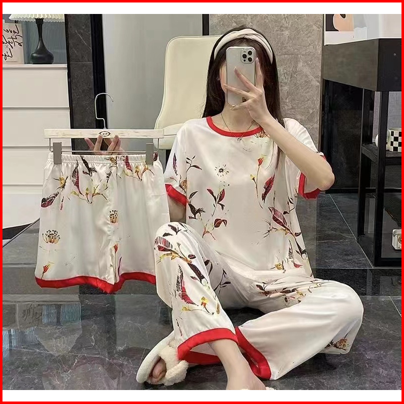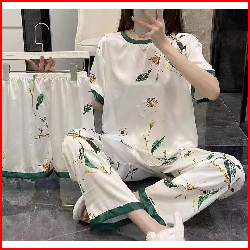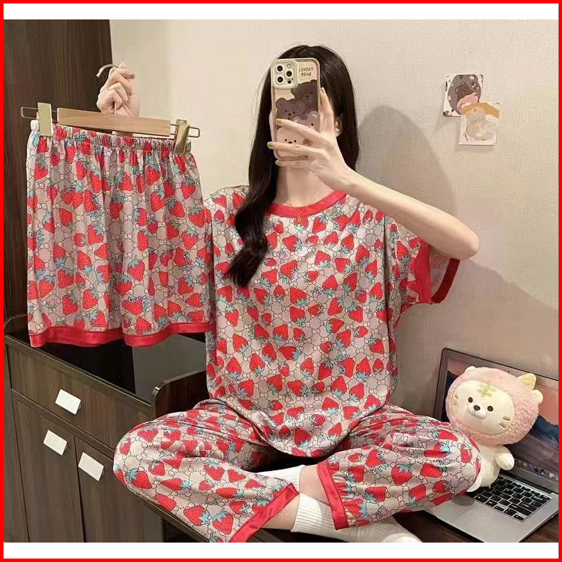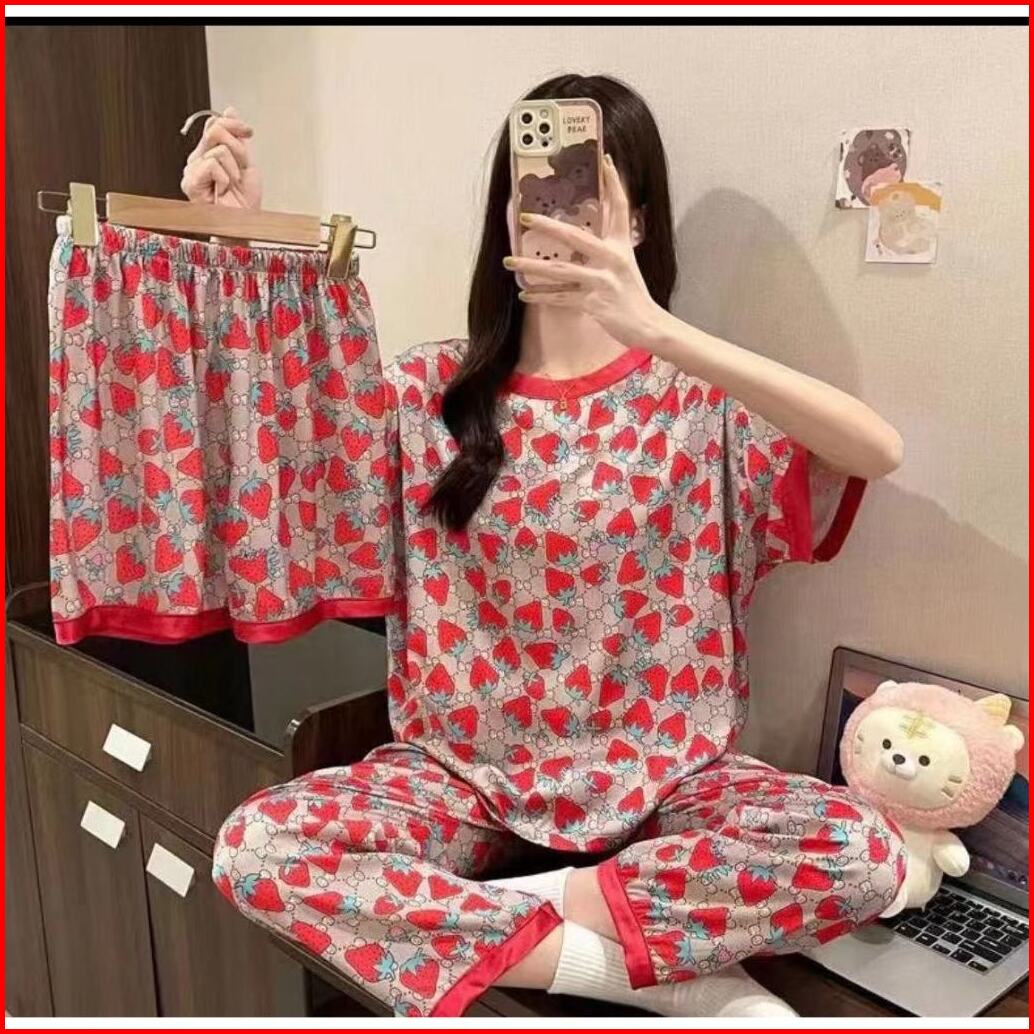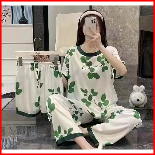 Piyama 3 In 1 Wanita Lengan Pendek Dewasa Lembut Dan Dingin