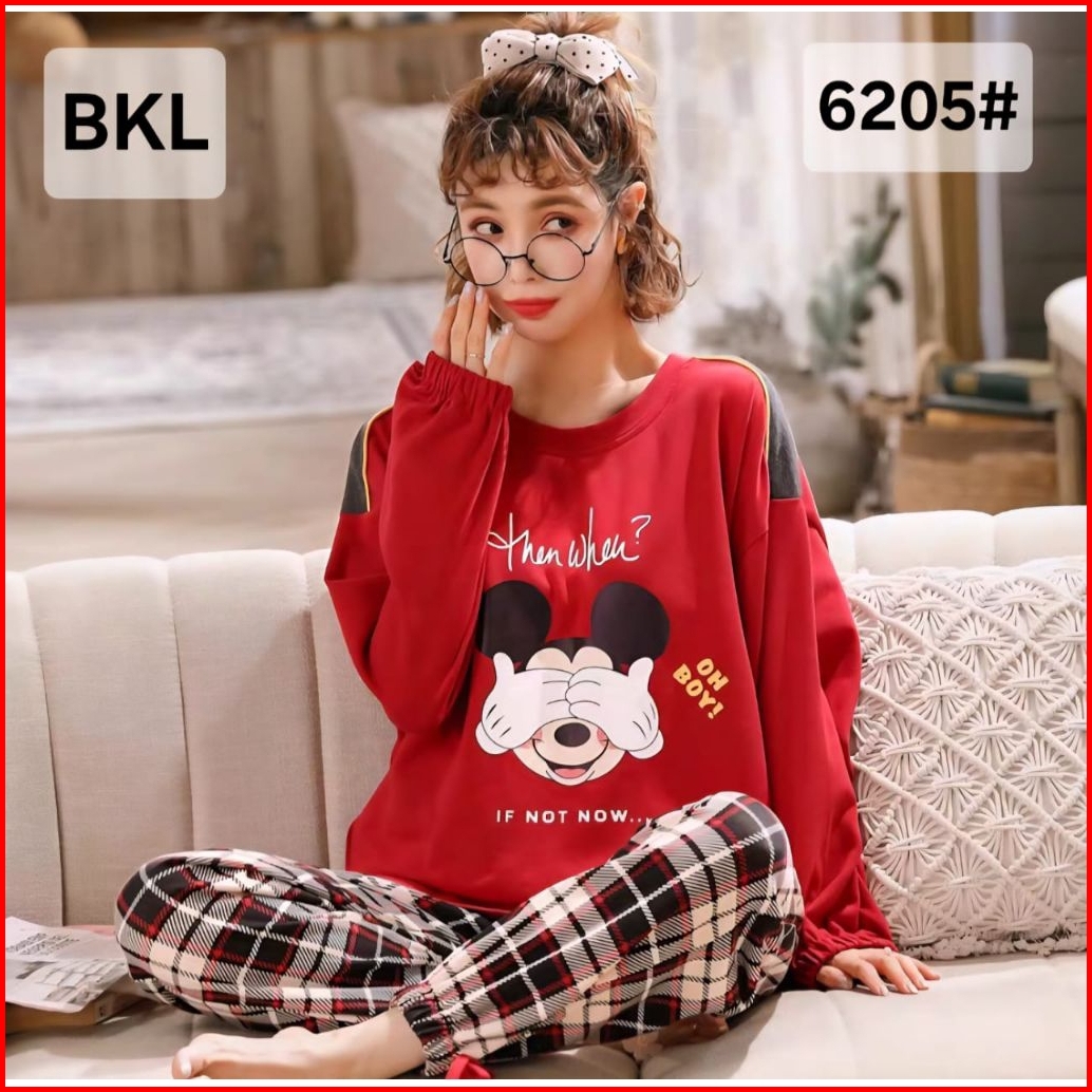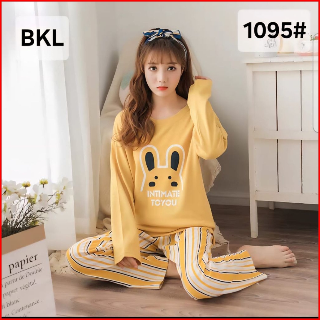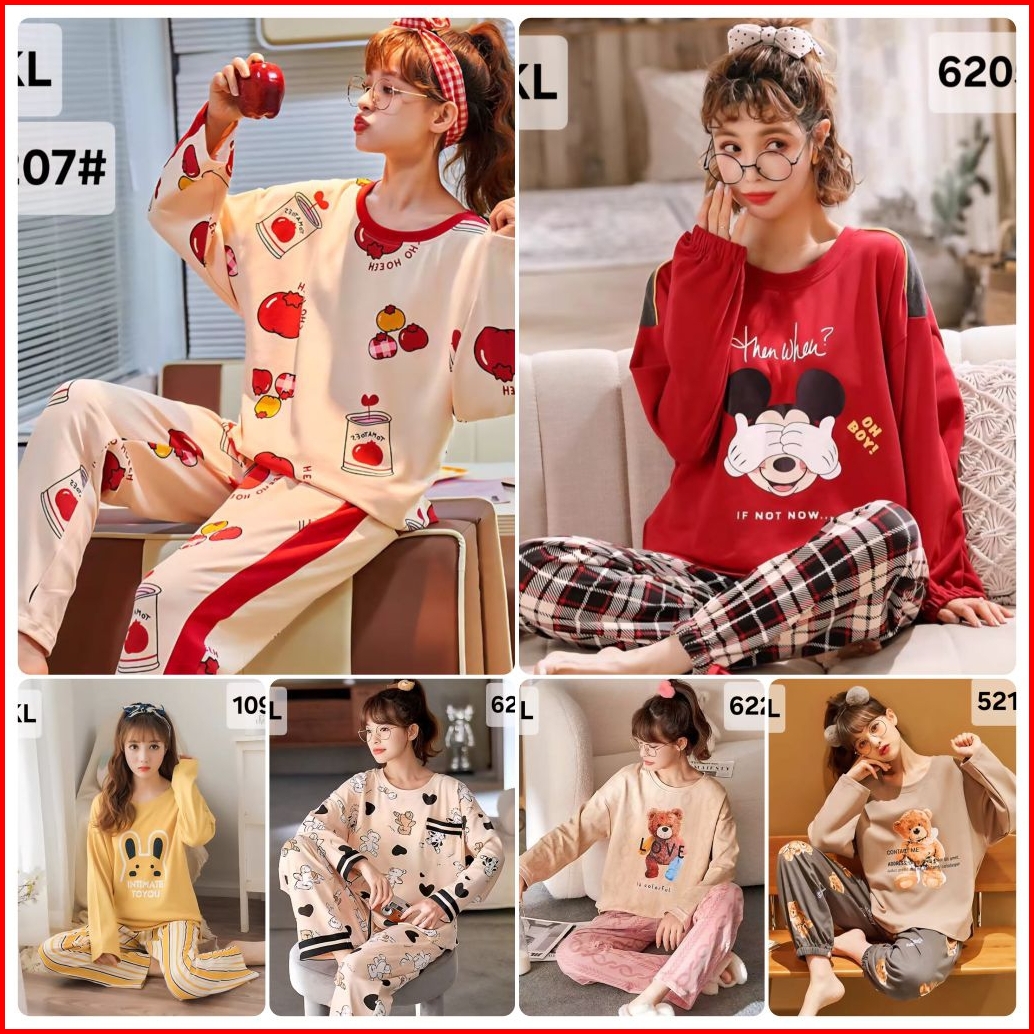 Stelan Piyama Wanita Import Kaos Tebal Baju Tidur Wanita Import