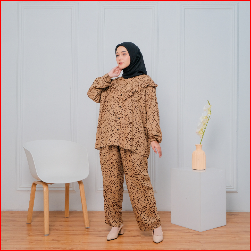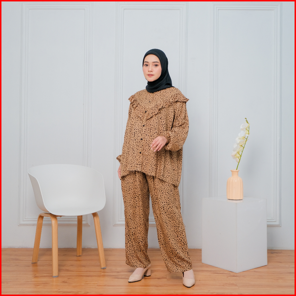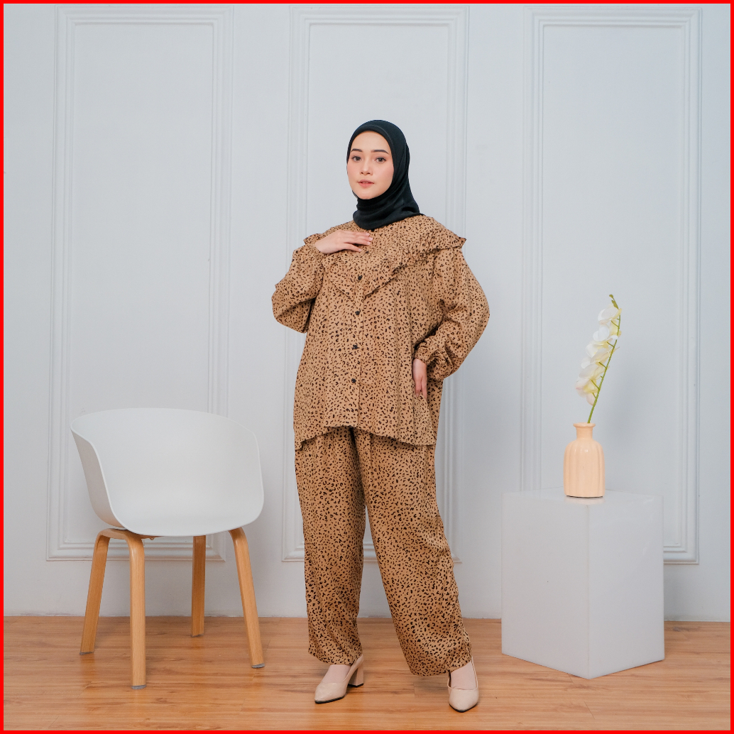 Lalucuku Arunda Leopard Brown Pajamas Baju Tidur Piyama Satu Set Wanita Hangout Kekinian