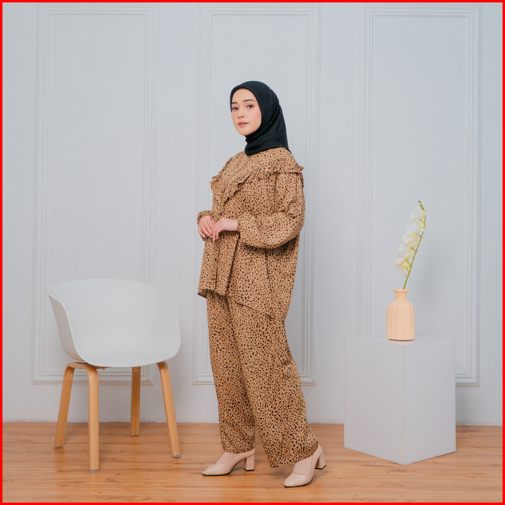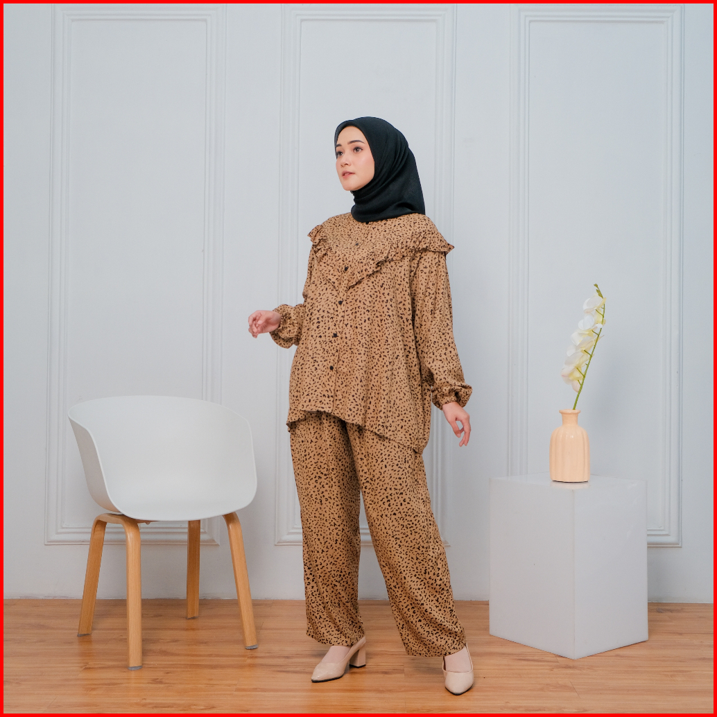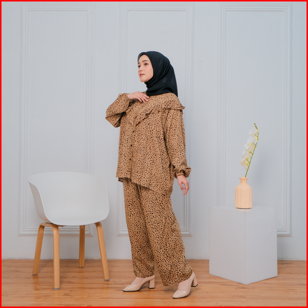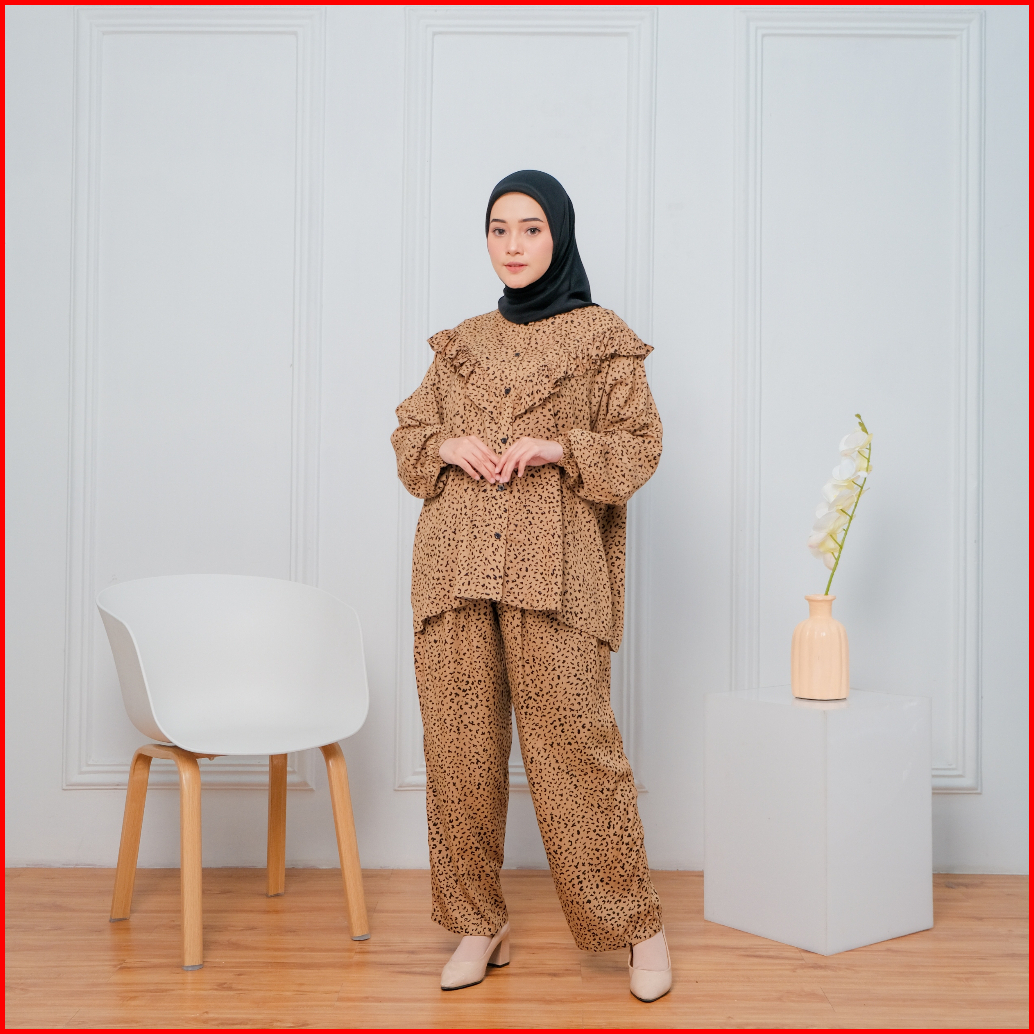 Lalucuku Arunda Leopard Brown Pajamas Baju Tidur Piyama Satu Set Wanita Hangout Kekinian