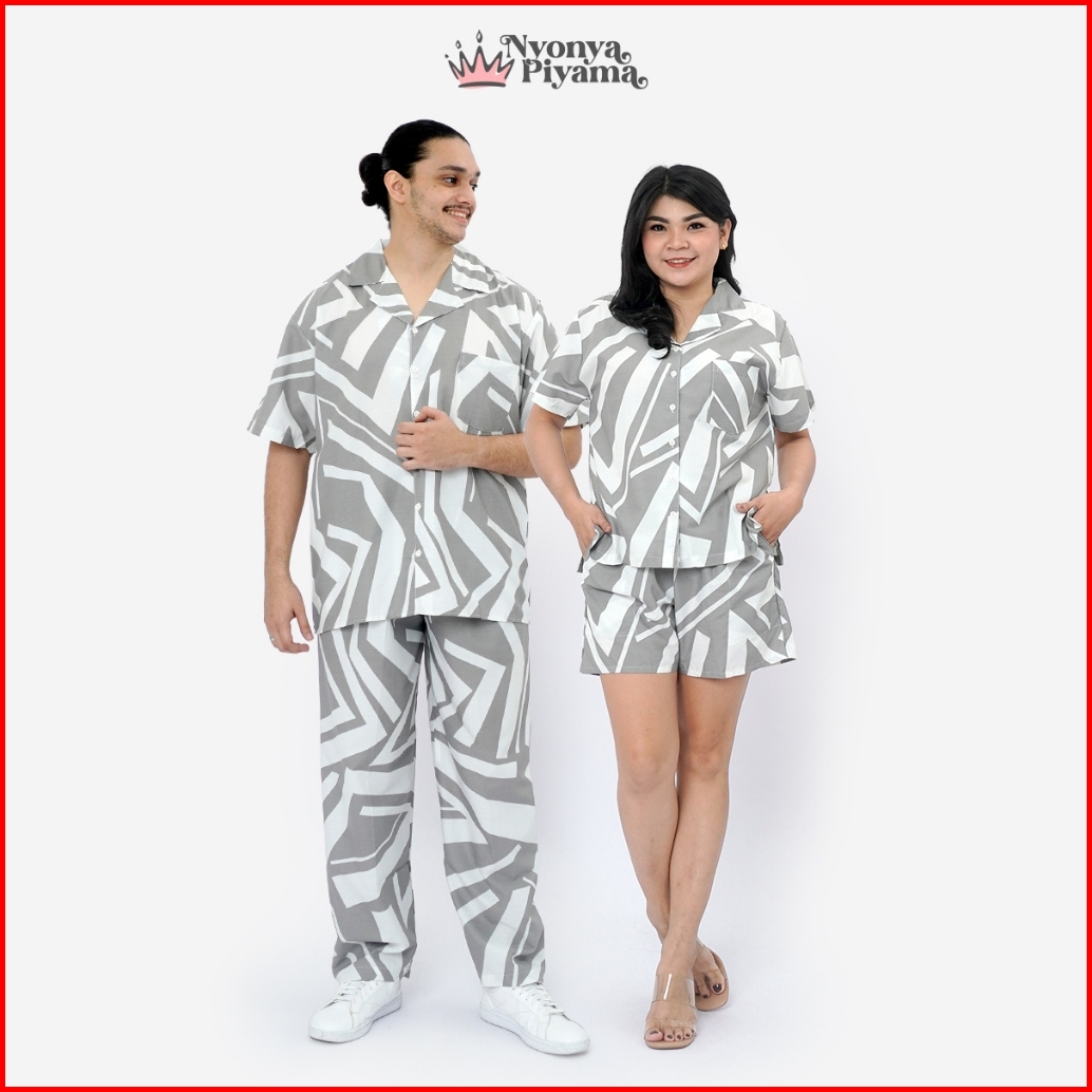 Nyonya Piyama Katun Set Couple Comfy Jordan Grey