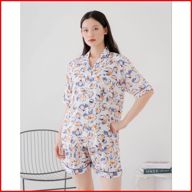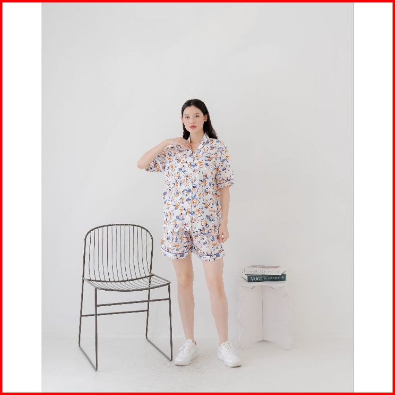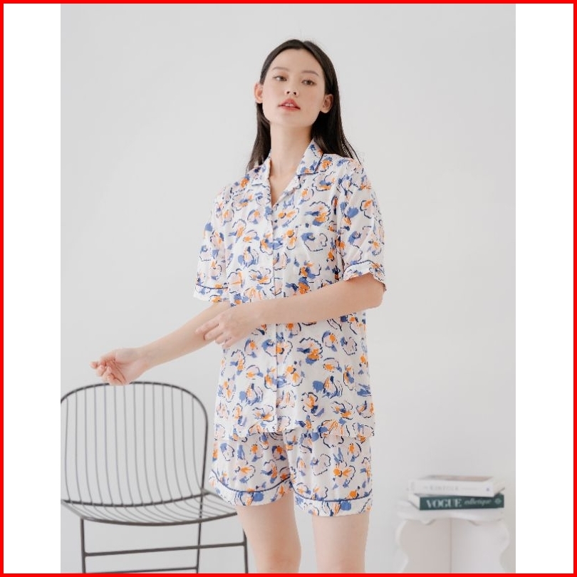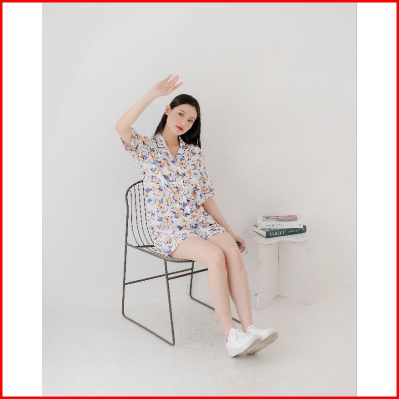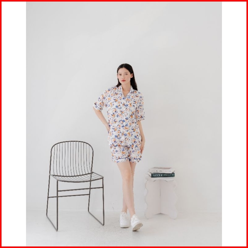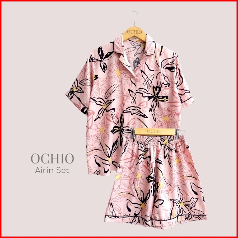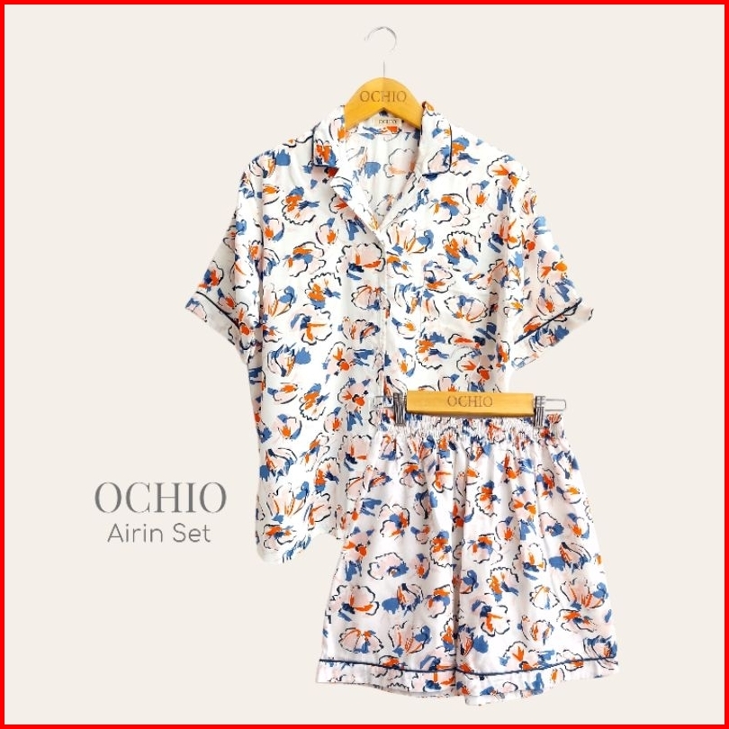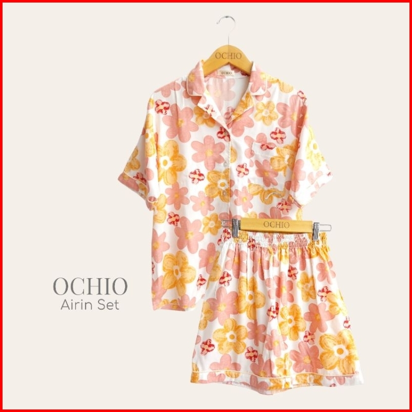 Ochio - Airin Set Pajamas Piyama Baju Tidur Sleepwear One Set Wanita Rayon Floral Series Motif Bunga