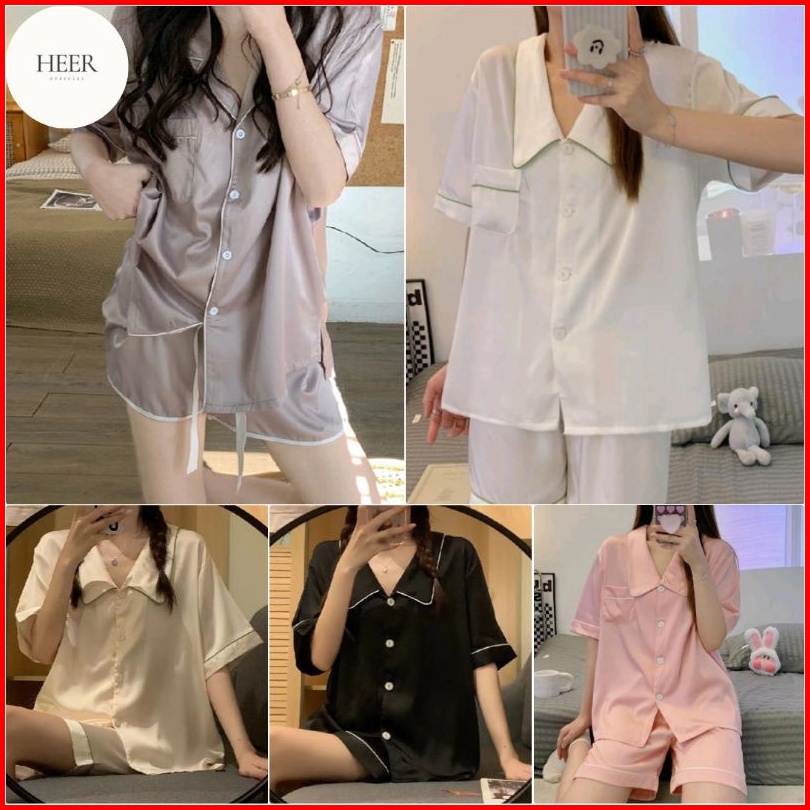Heer Piyama Pakaian Wanita Satin Set