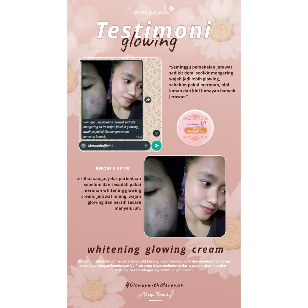 [TERLARIS] WHITENING GLOWING CREAM 2IN1 MERONAH BEAUTY CAREKRIM GLOWING DAN PEMUTIH 2IN1 MERONAH