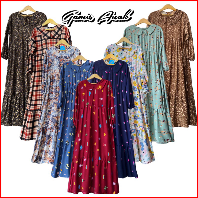 Gamis Dress Anak Perempuan Usia 3 4 5 6 7 8 9 10 11 12 13 14 Tahun Remaja Dress Maxy Bahan Rayon Viscose Motif Bunga Luc