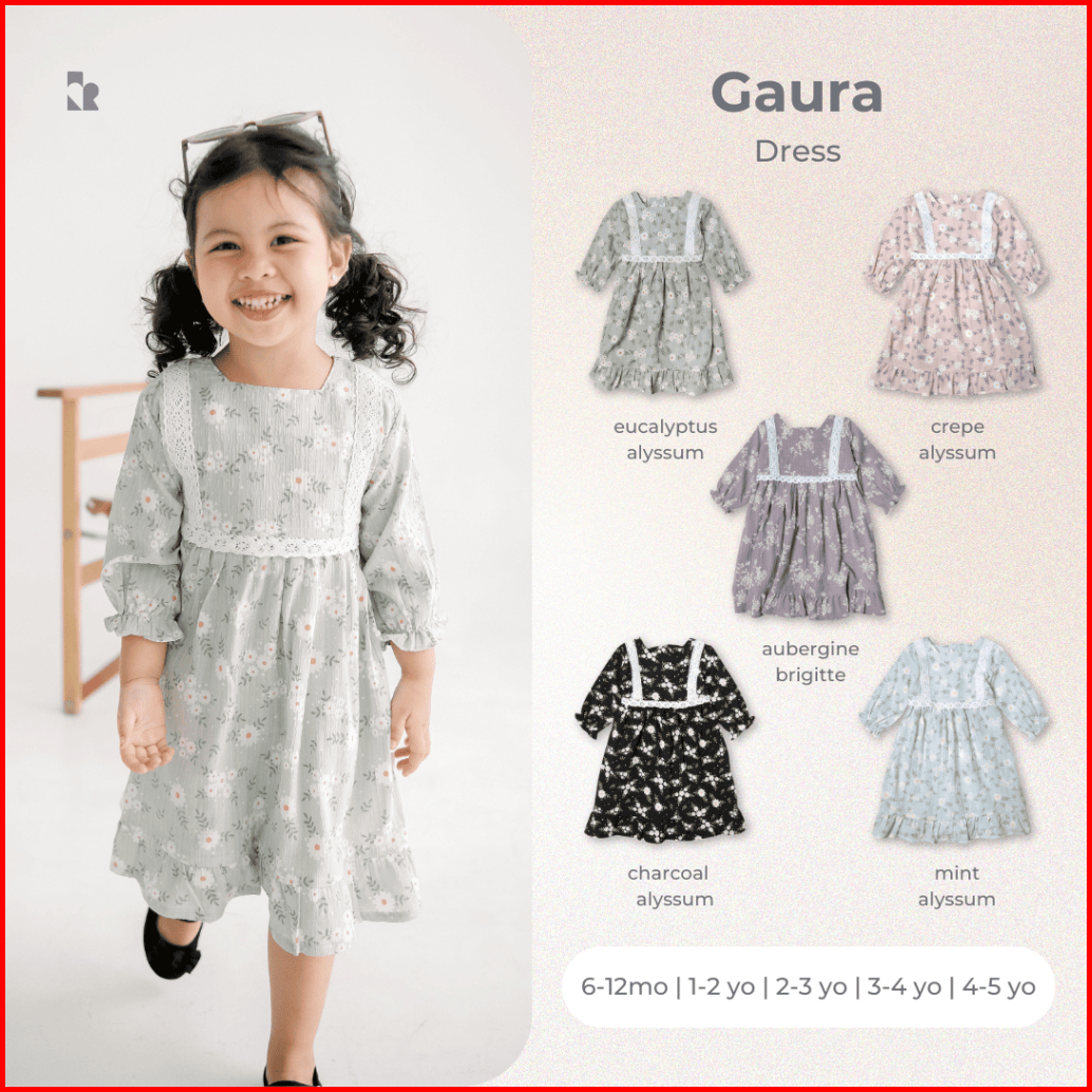Kindr Gaura Dress Anak Perempuan Lengan Pendek 1 - 5 Tahun