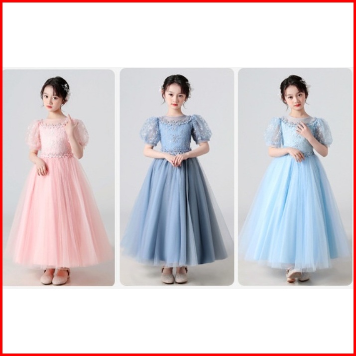 Dress Pesta 8901 Anak Perempuan Import Baju Pesta Anak Tutu Satin Gaun Bling Import High Quality Gaun Natal