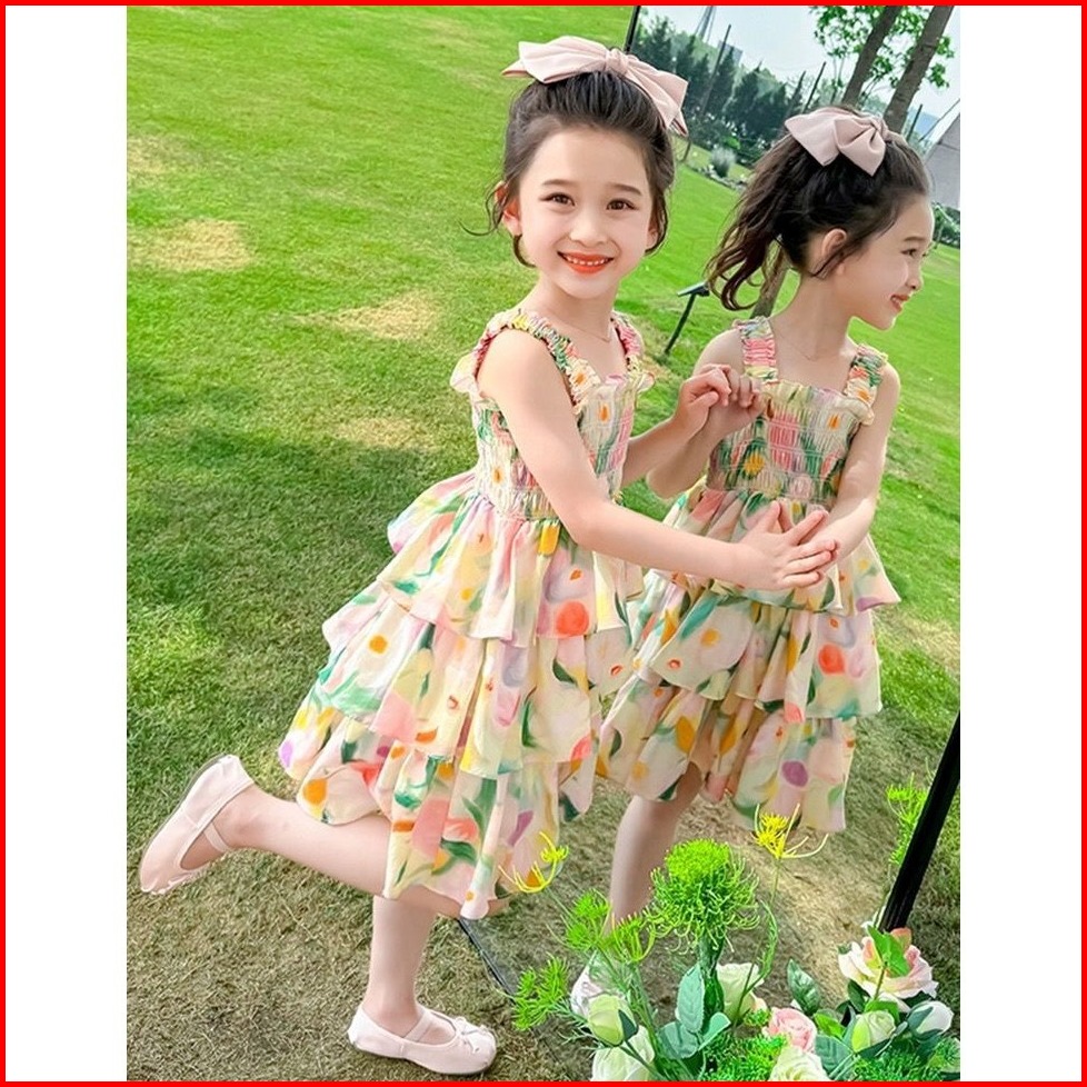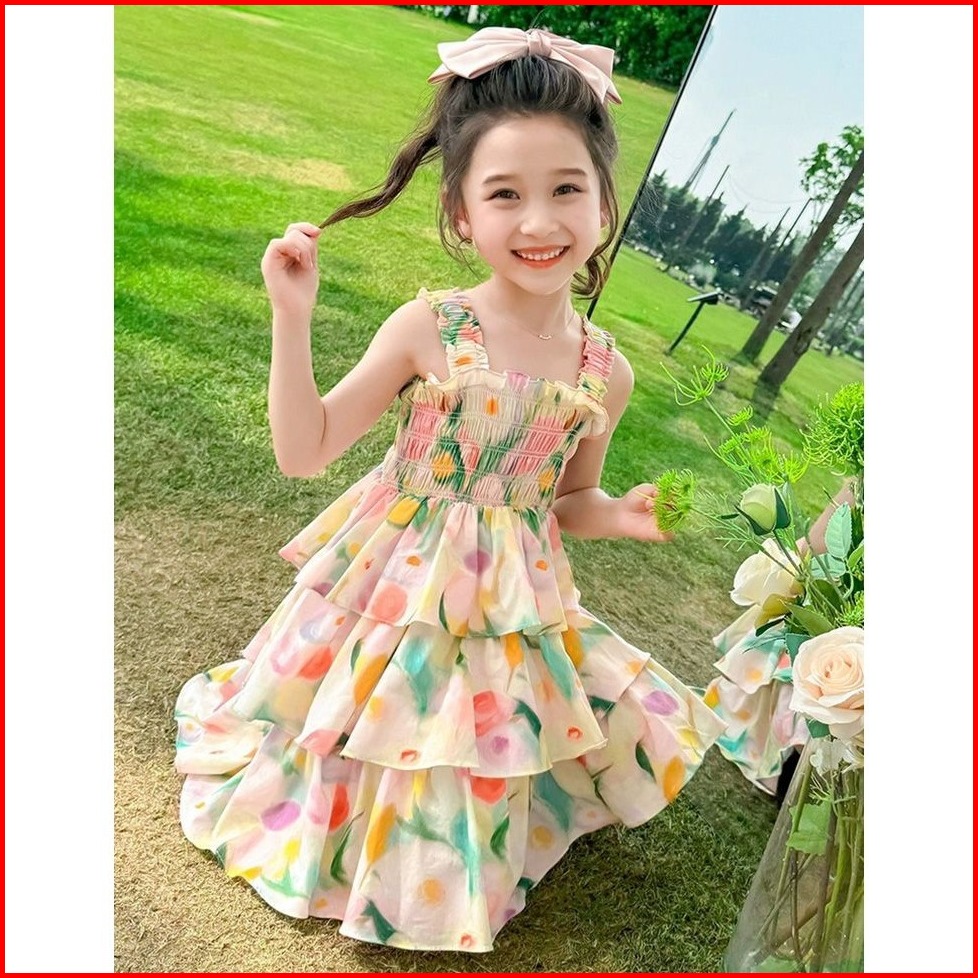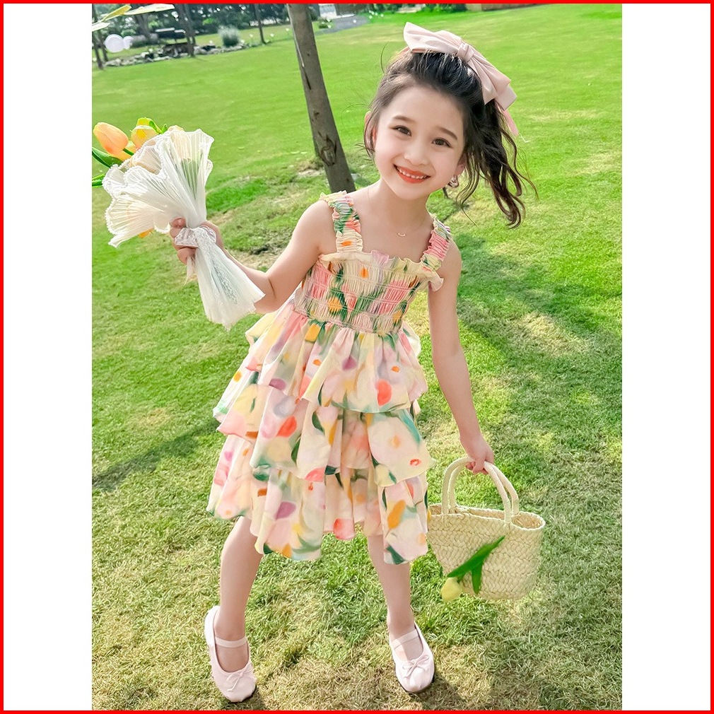 Meandboss Dr64-dress Gaun Anak Perempuan Strip Rok Bunga Ombre Layer Fashion Korea Princess