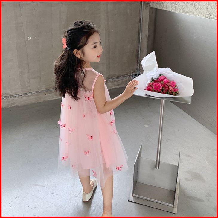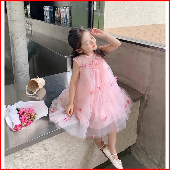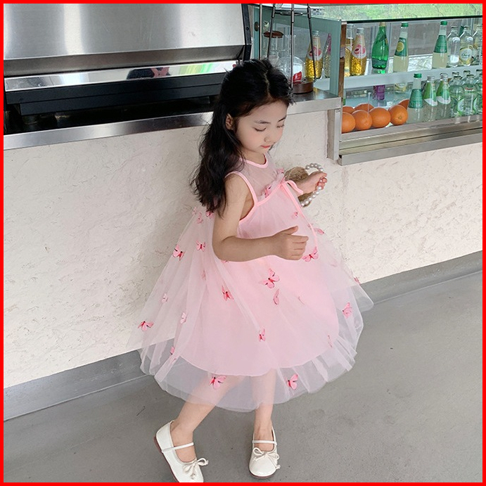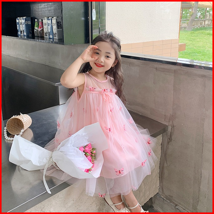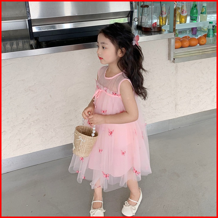 Dadaward 2-6 Tahun Dress Anak Perempuan Gaun Musim Panas Sayap Busur Anak-anak Gaun Putri Rok Jala Bayi Berusia Setahun