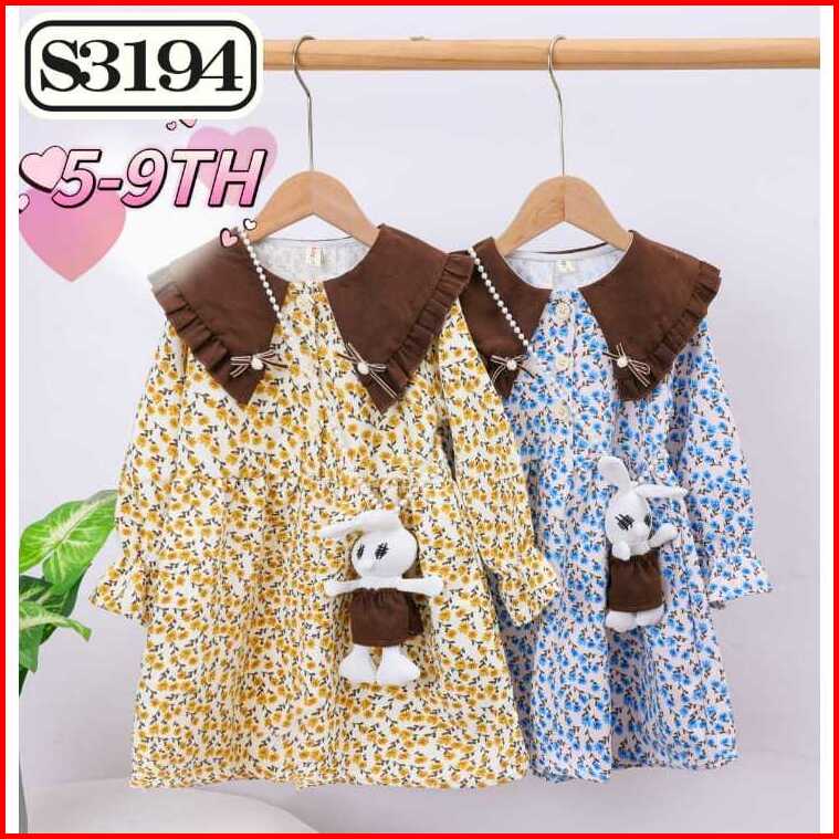Dress Anak Import 4 Tahun Sampai 9 Tahun Baha Premium Import Free Tas Boneka