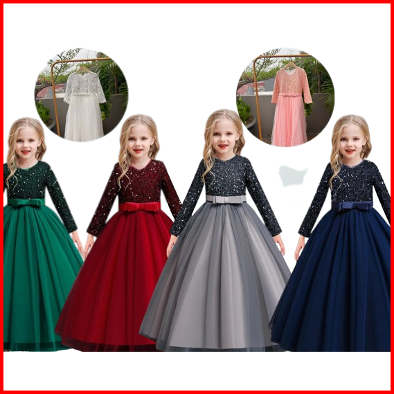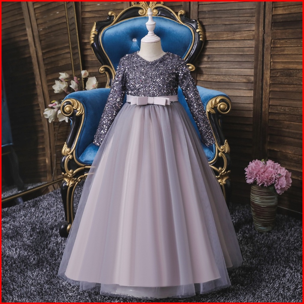 Mamasilo Dress Anak Perempuan Payet Lengan Panjang Long Dress Anak Payet Dress Lebaran