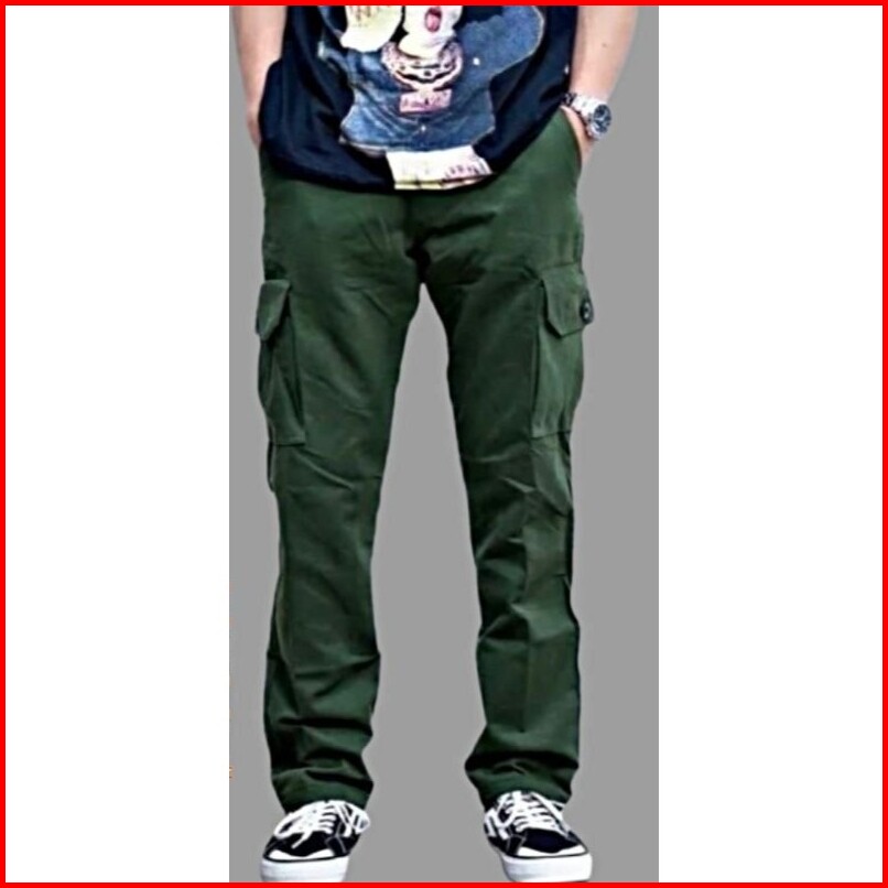 Celana Cargo Panjang Pria Retro Bahan Twill
