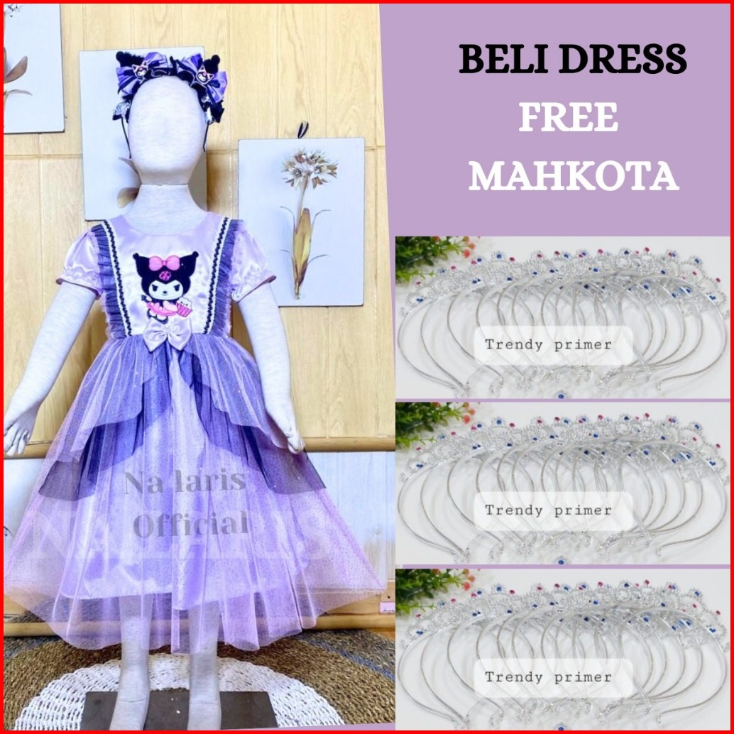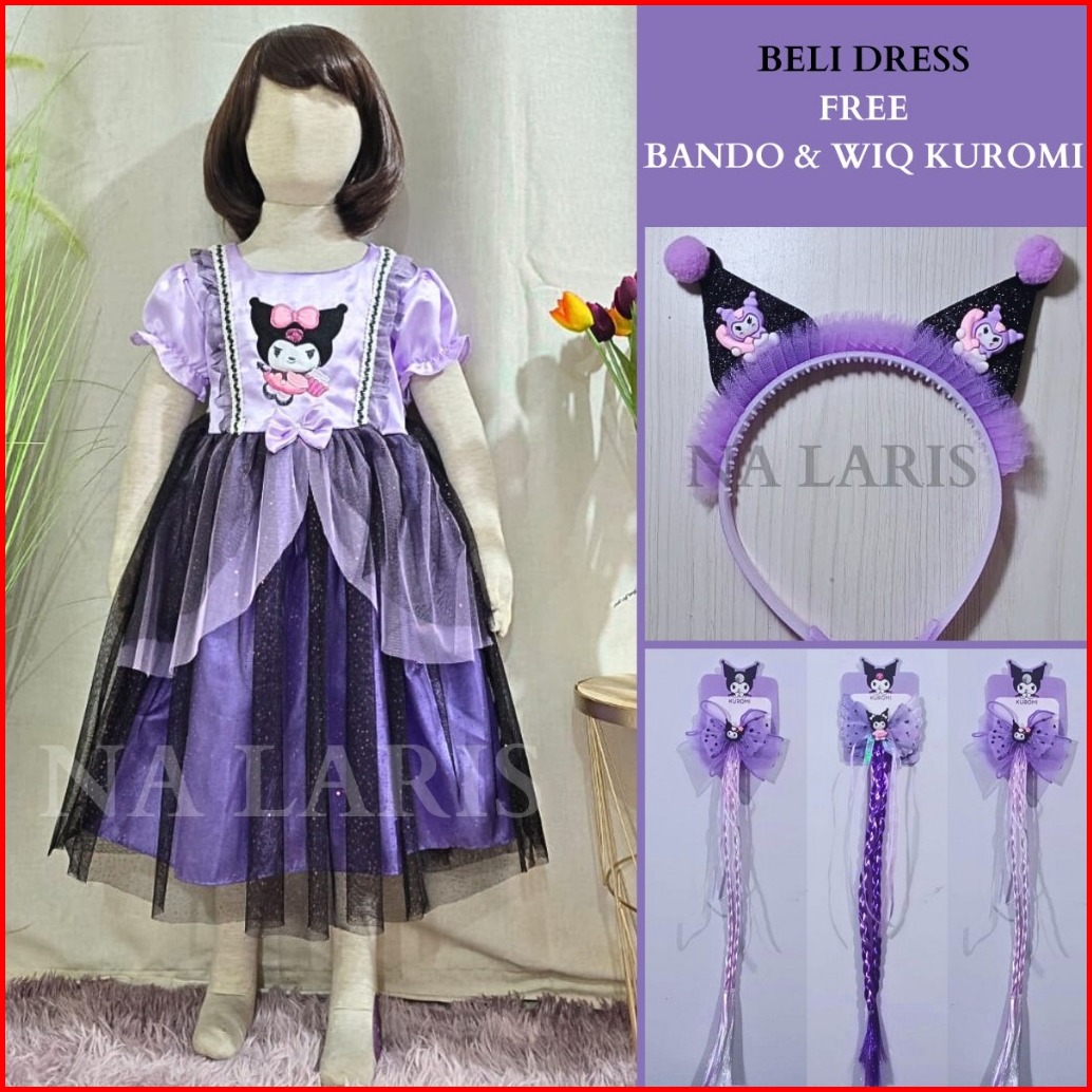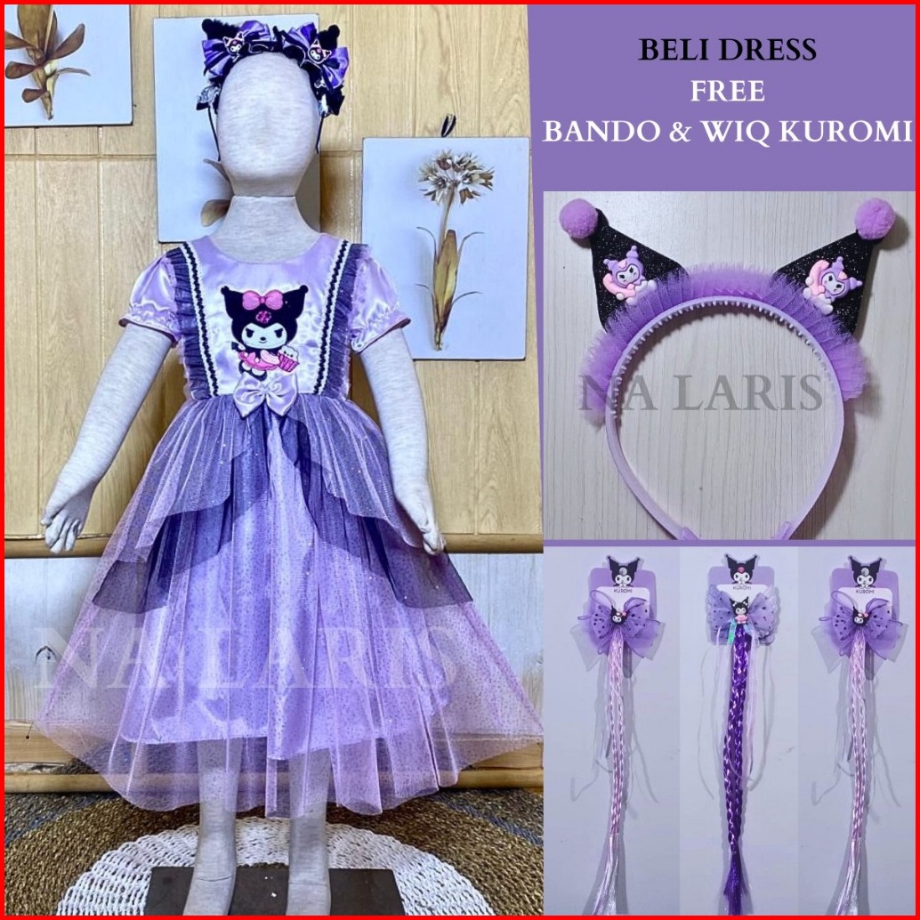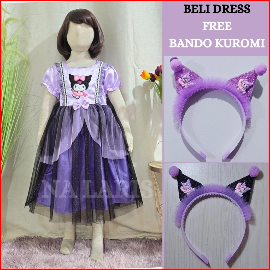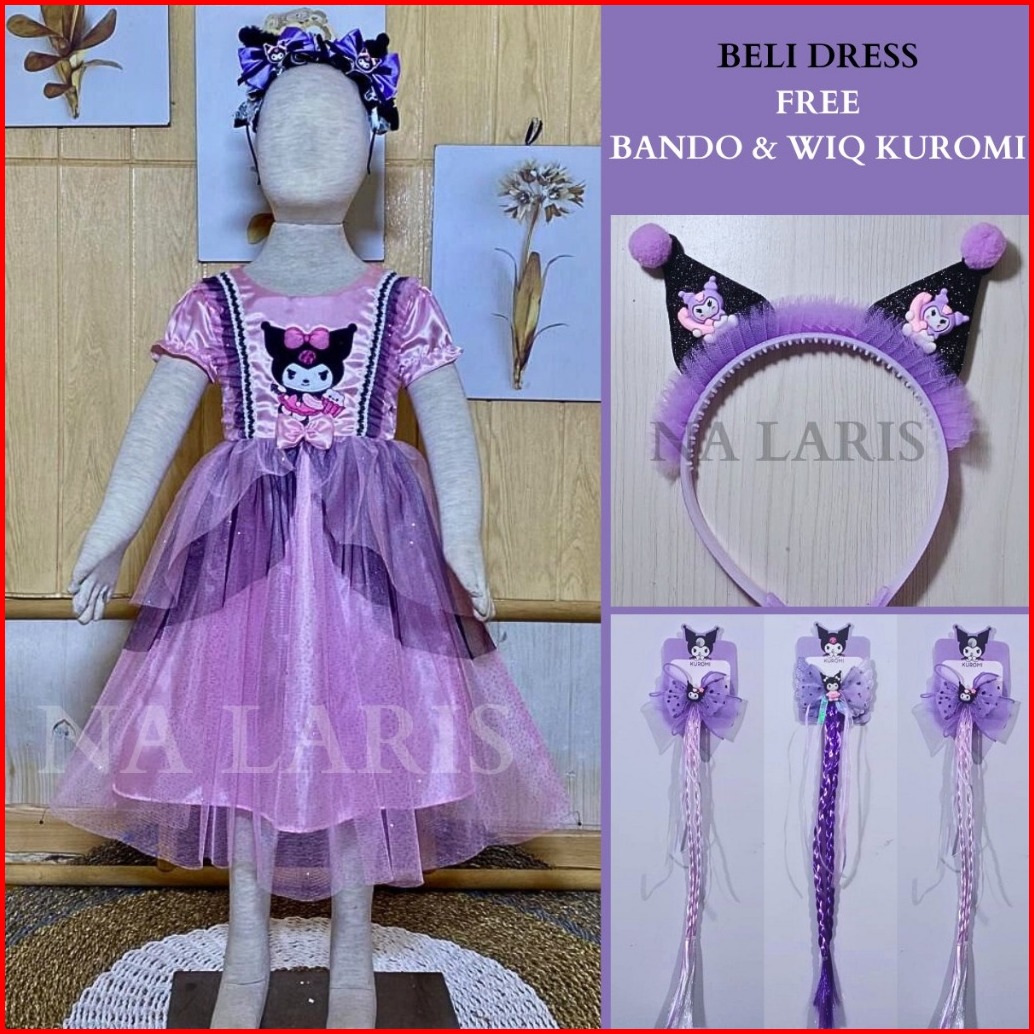 Gratis Bando Kuromi Dress Ultah Kuromi Anak Perempuan Usia 3-10 Tahun - Dress Anak Gaun Pesta Import Motif Karakter Kuro