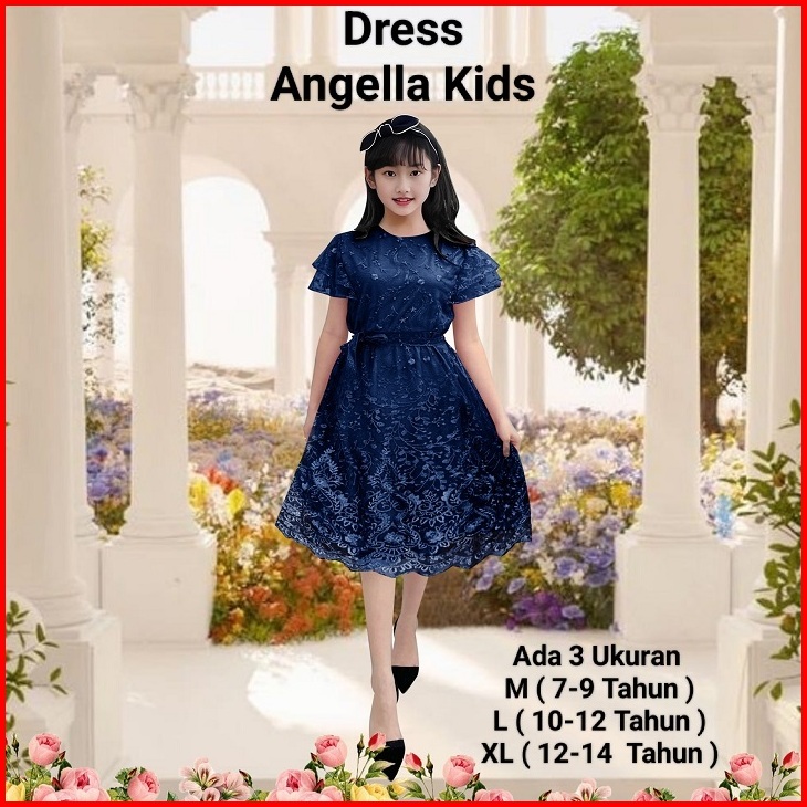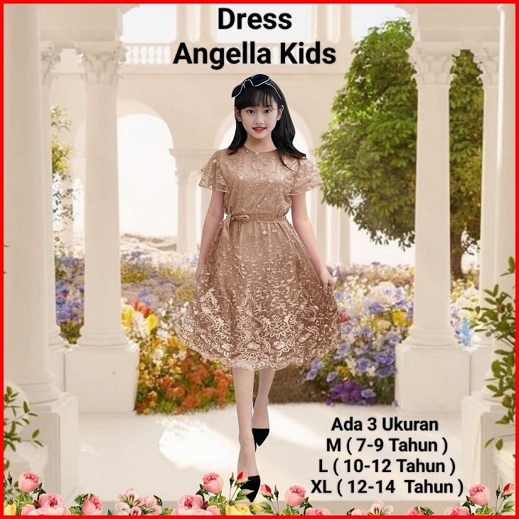 Dress Anak Perempuan Remaja Terbaru Full Brokat Mutiara Dress Angella Kids 7-14 Tahun Dress Pesta Natal Abg Model Kekini