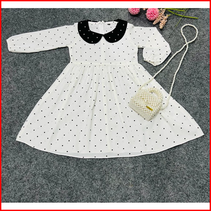 Leia - 20 Gaun Anak Perempuan Dress Anak Perempuan Polka Panjang Woolpeach Import Premium Untuk Usia 3-9 Tahun