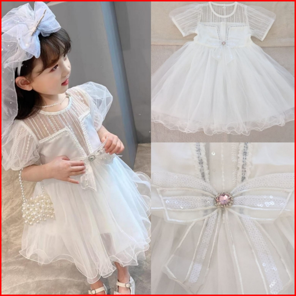 2-8th Dress Putih Anak Import Gaun Pesta Pita Lengan Pendek Premium