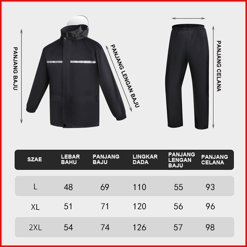 Jas Hujan Pria Dan Wanita Setelan Premium All Size Tebal Anti Angin Jas Hujan One Set Dewasa